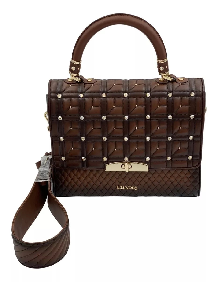 Bolsa de dama en Piel de Res con detalles dorados y bordado . Incluye asa corta y asa larga desmontable con detalles metálicos en color dorado que resaltan a la vista.