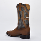 Bota Vaquera Bronco Rey- Piel Genuina Café | Bordado Exótico y Horma Cuadrada