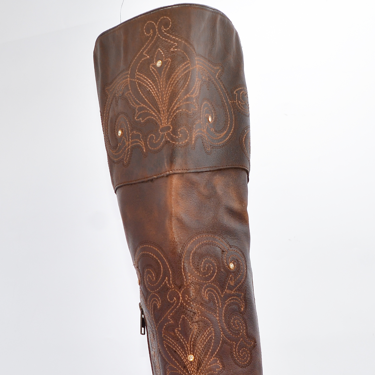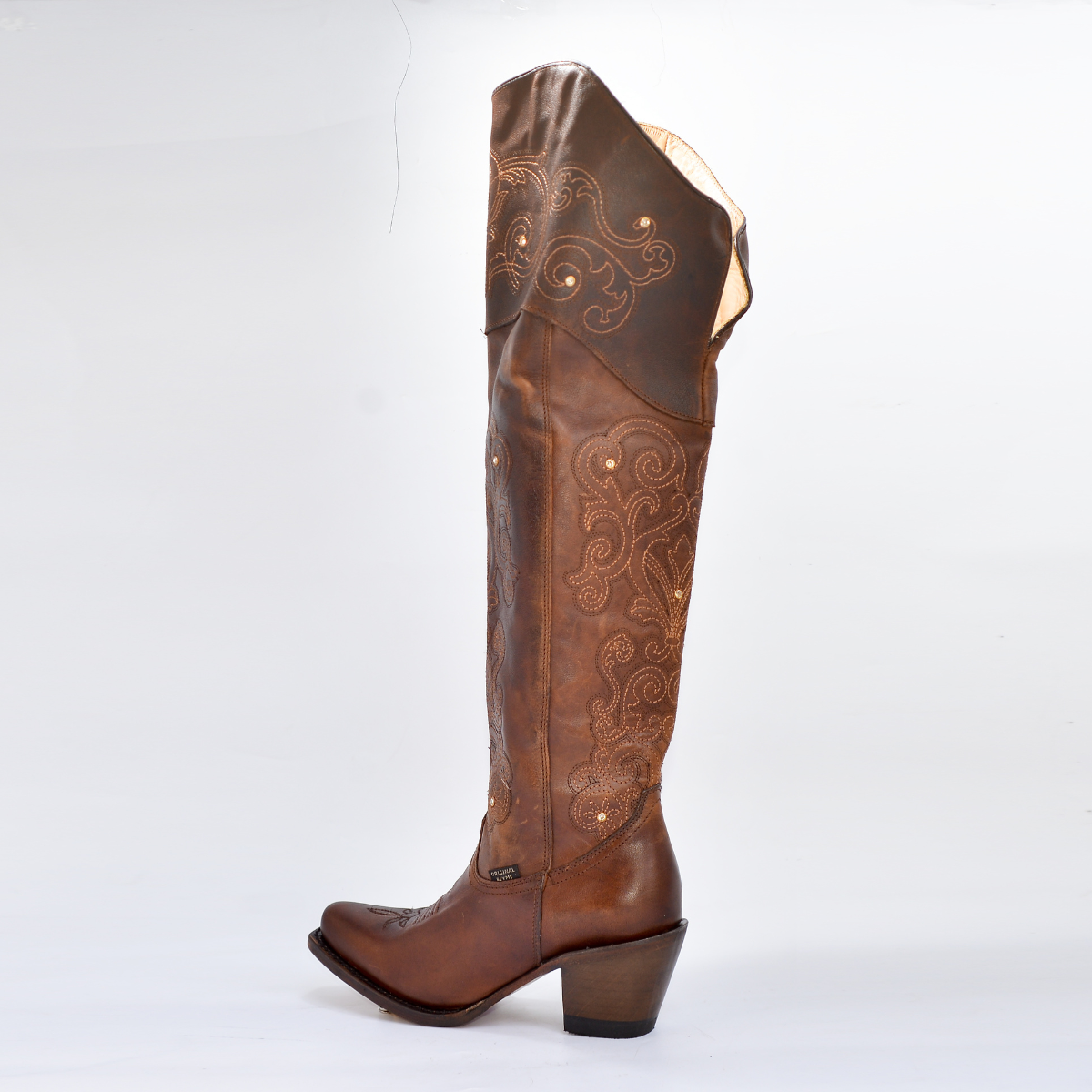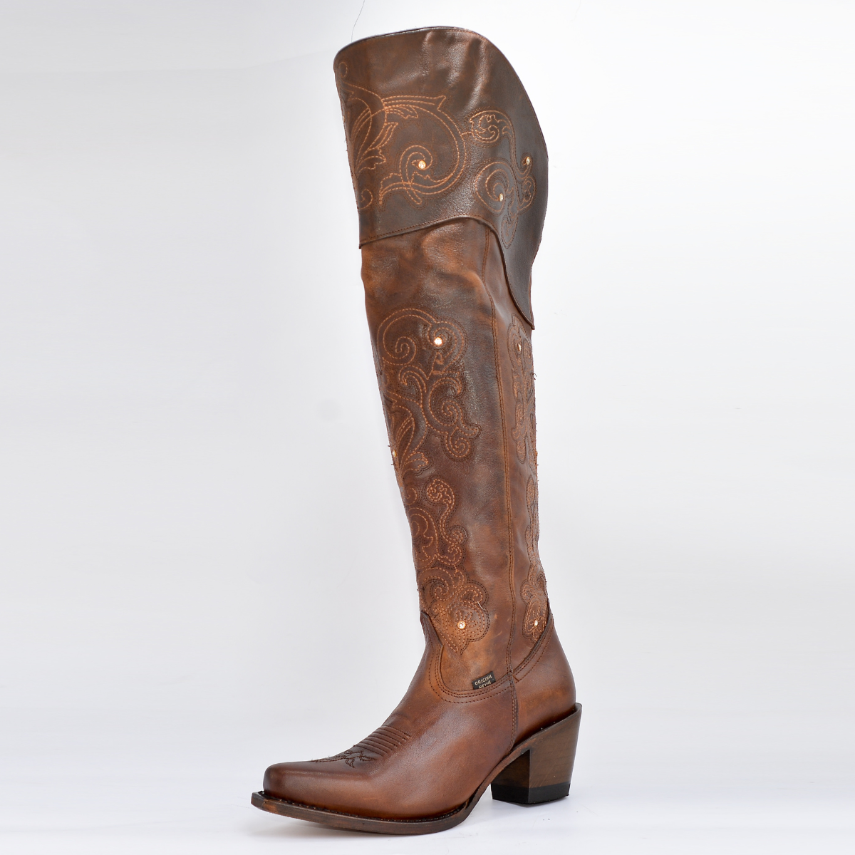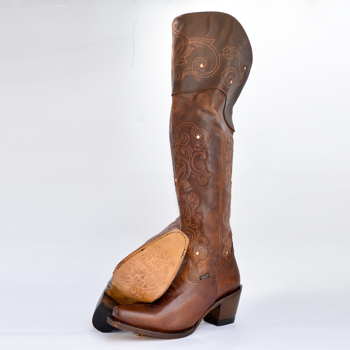 Bota Vaquera Alta para Mujer de Piel Genuina – Artesanal Bordada
