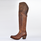 Bota vaquera de lujo para mujer, elaborada en piel genuina de alta calidad. Su diseño de caña extra alta destaca por los bordados artesanales finos y aplicaciones metálicas que realzan el diseño. Ideal para quienes buscan un estilo elegante, tradicional y auténtico, sin perder comodidad.