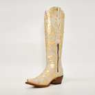 👢 Bota Vaquera Robert Jr para Mujer – Piel Dorada con Bordado y Brillos