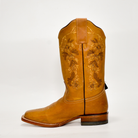 Las botas Reyme Original en piel genuina color miel son una joya del diseño vaquero femenino. Su acabado suave y su bordado floral tono sobre tono ofrecen una apariencia delicada, refinada y versátil, ideal para lucir en cualquier ocasión.