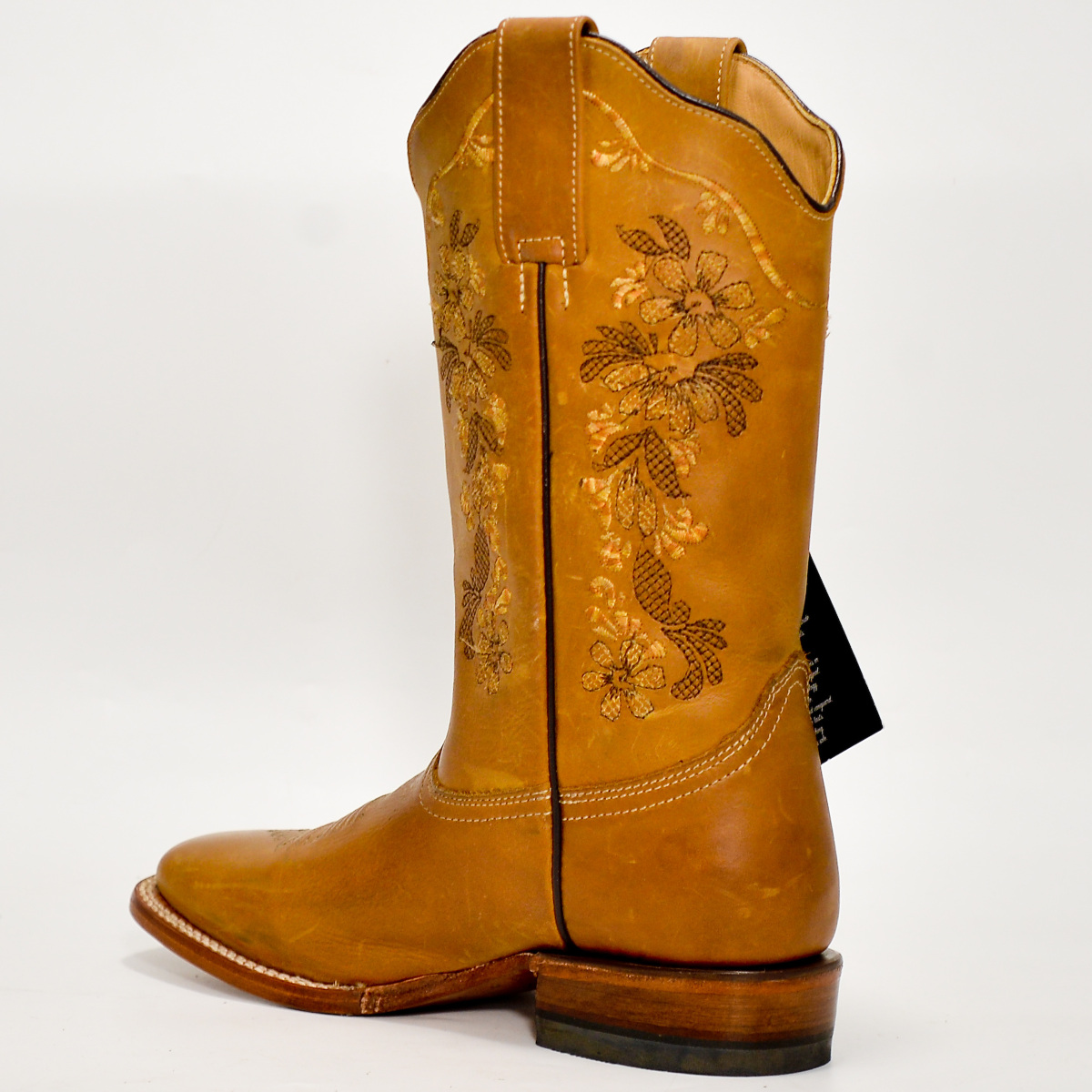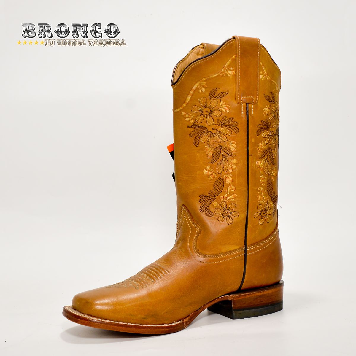 👢 Bota Vaquera Reyme para Mujer – Piel Miel con Bordado Floral Tono sobre Tono