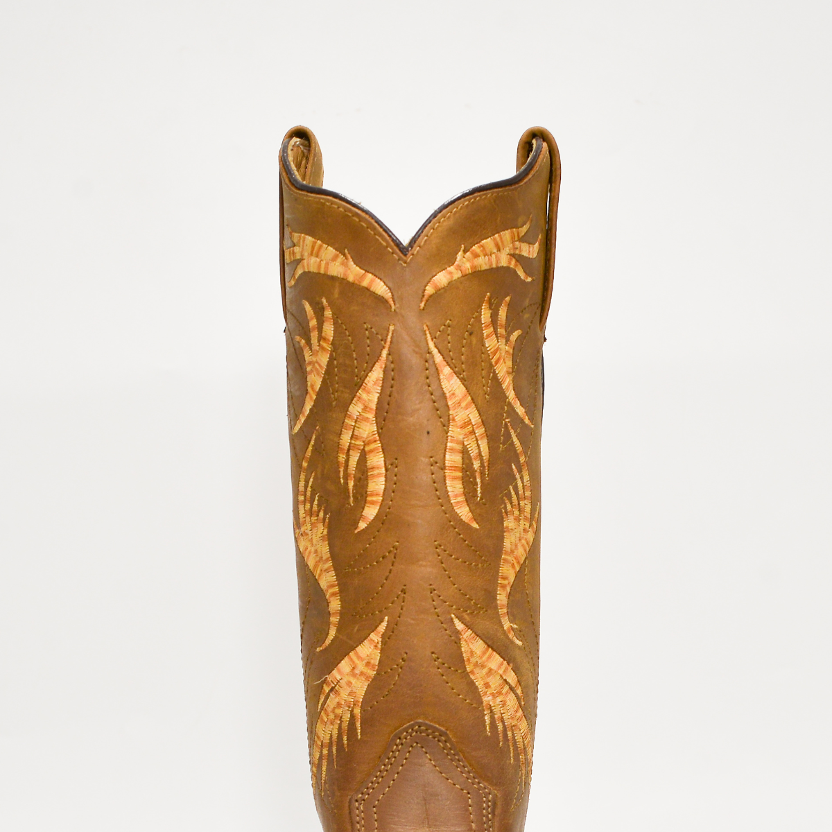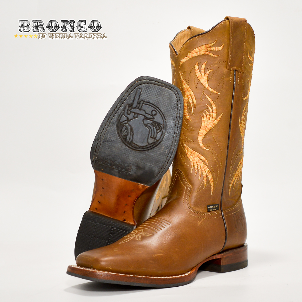Auténtico diseño artesanal mexicano que combina elegancia, resistencia y estilo vaquero. Las botas Reyme Original están elaboradas con piel genuina de alta calidad, con un bordado beige en forma de flamas que aporta un toque moderno y distintivo.