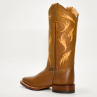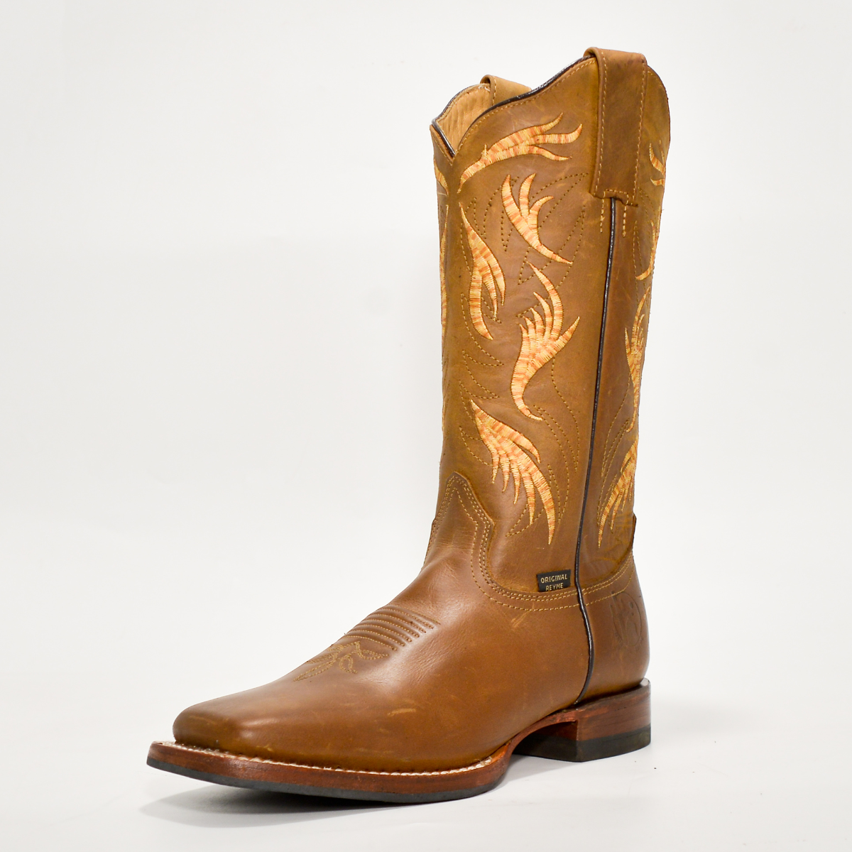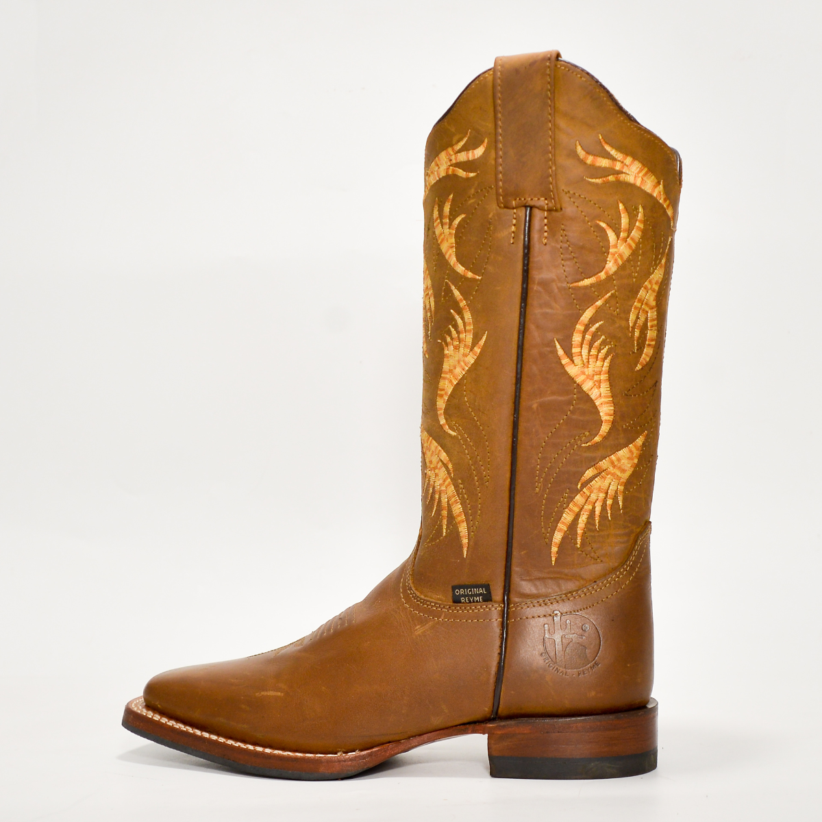 Bota Vaquera Reyme Original para Mujer – Piel Café con Bordado Beige