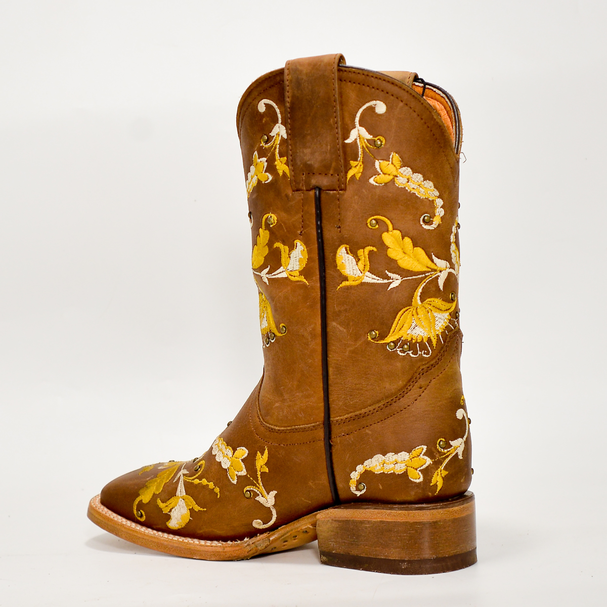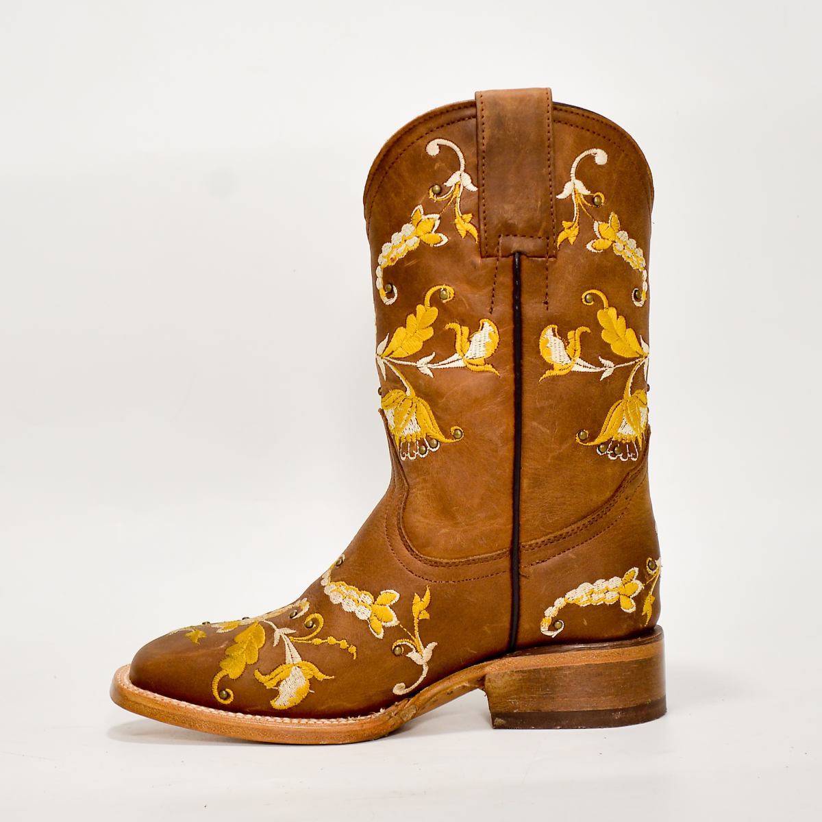 Estas botas son una verdadera expresión de elegancia artesanal. Su tono miel cálido y el bordado floral dorado las convierten en una opción ideal para quienes desean un look vaquero refinado y moderno.