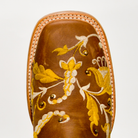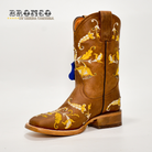 👢 Bota Vaquera Nvo Jar Boots para Mujer – Piel Miel con Bordado Floral Amarillo y Beige