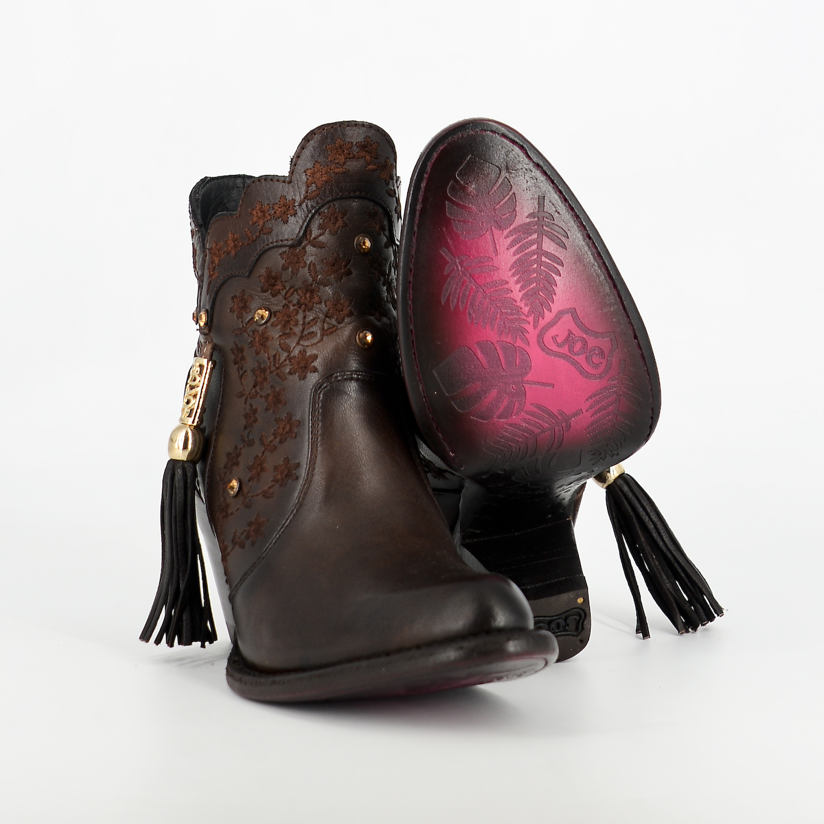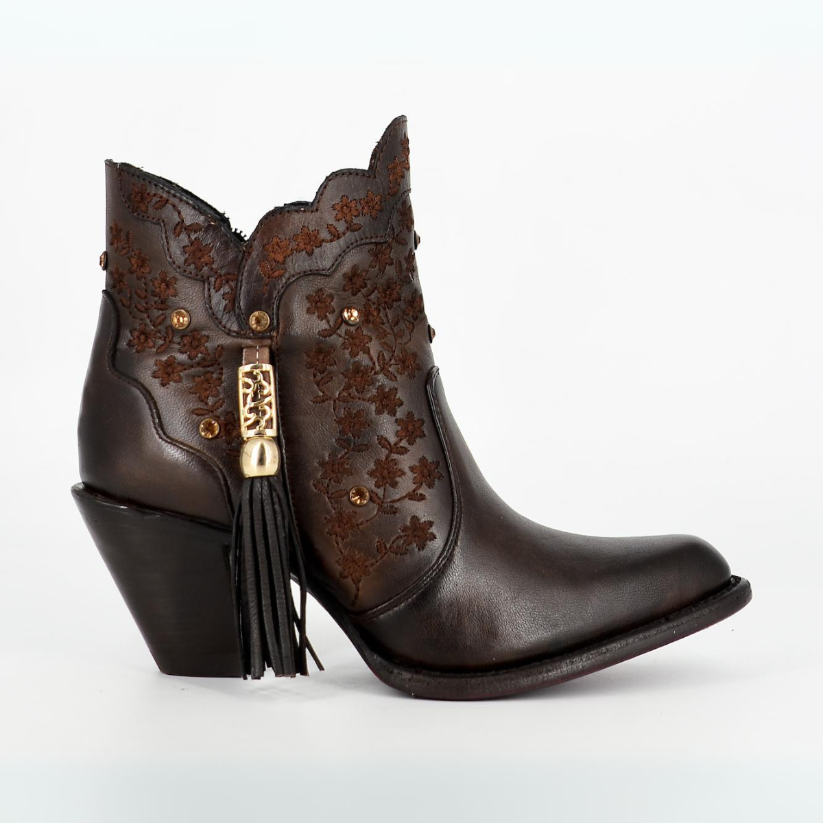 Botín de dama en piel de pelibuey color brs choco.