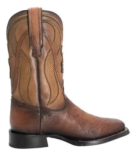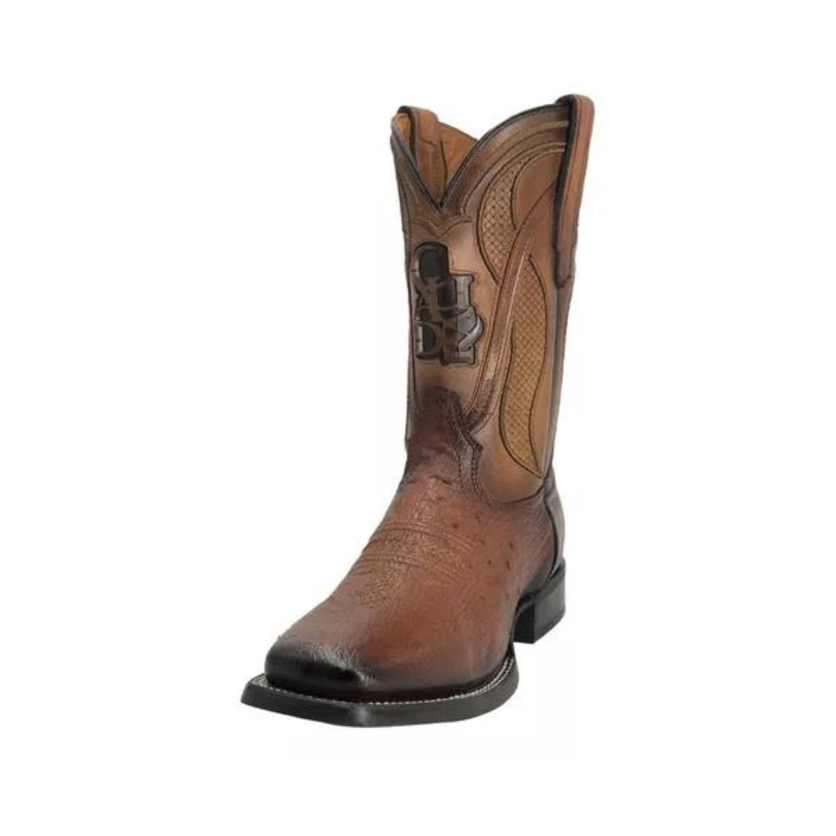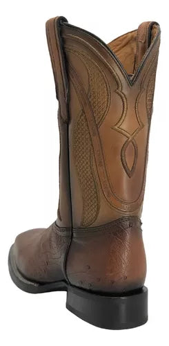 Bota rodeo para caballero en piel genuina de panza de avestruz y piel de bovino. Sobre el tubo presenta bordado, grabado láser de logotipo Cuadra y aplicación de hule de logotipo Cuadra al frente. Plantilla desmontable de poliuretano inyectado con inyectores de gel en puntos de impacto, cubierta con textil antimicótico. Brinda estabilidad y comodidad, además de absorber y amortiguar el impacto. Con suela de hule flexible con textura antiderrapante, resistente a la abrasión, absorción del agua ya altas temperaturas.