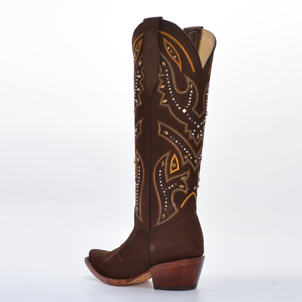 👢 Bota de Gala para Dama – Nubuck Café con Cristales y Bordados