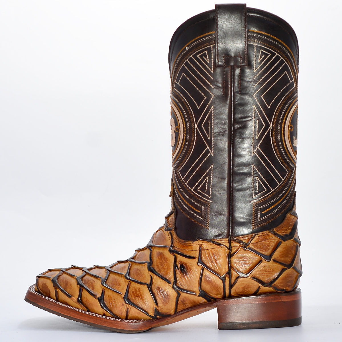 👢 Bota Exótica de Gala – Pirarocu Original (Color Miel)
