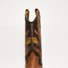 Elegancia, tradición y calidad artesanal en un solo diseño. Las botas Reyme Original están elaboradas con piel genuina de alta calidad, en un tono café con acabado texturizado y caña bordada con flores amarillas y hojas en relieve. Su estilo clásico combina perfectamente con la esencia del calzado vaquero mexicano, ofreciendo una presencia distinguida y auténtica.