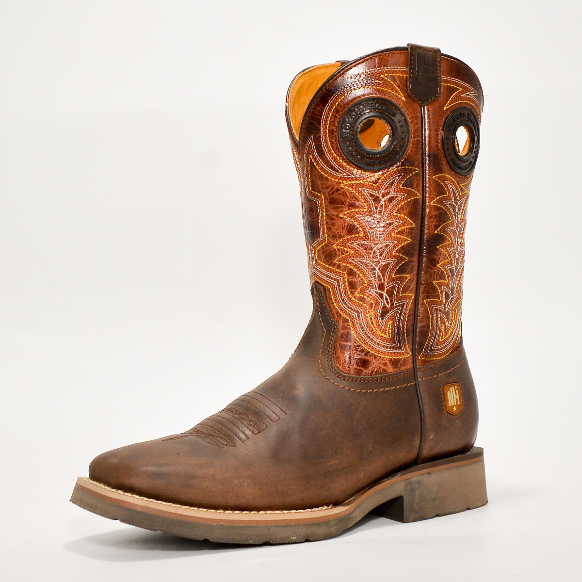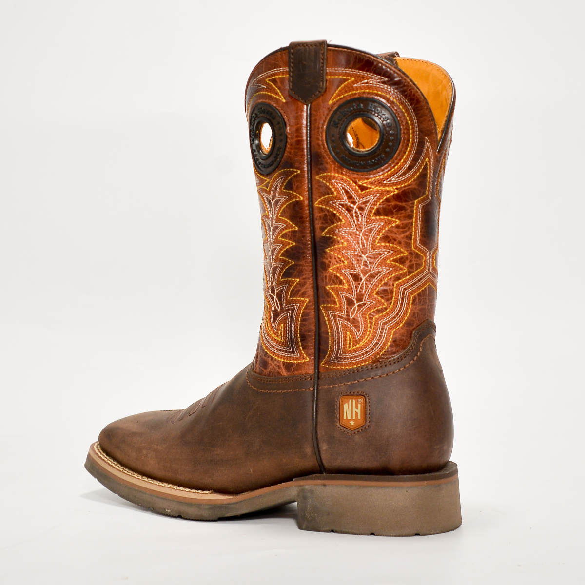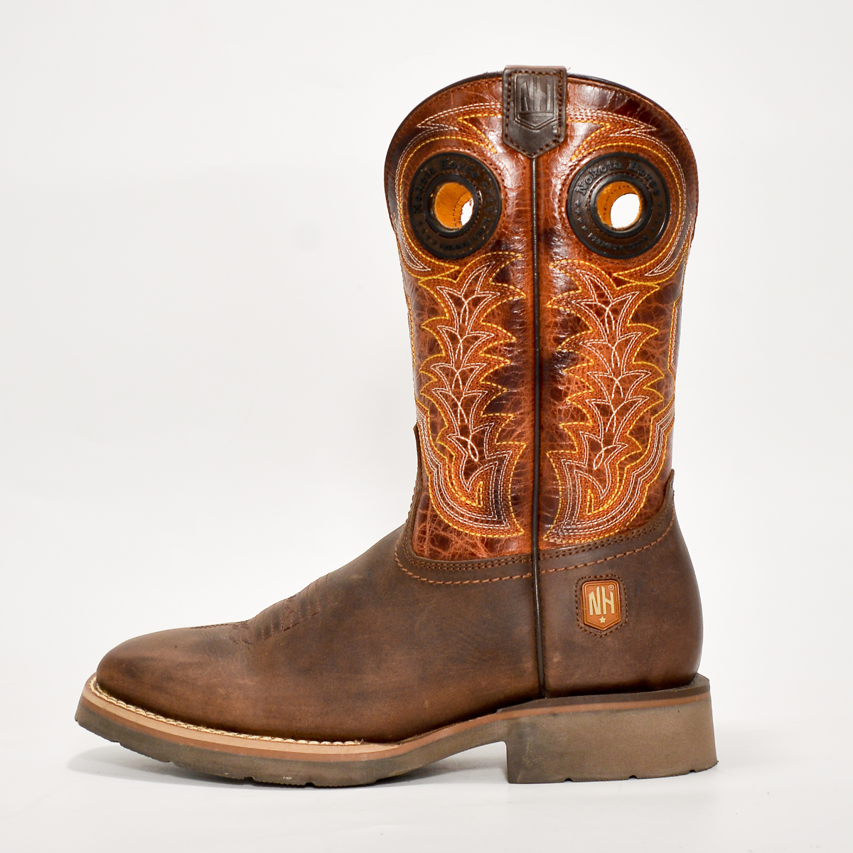Bota Vaquera Nokota Horse para Hombre – Piel Café con Tubo Bordado en Miel