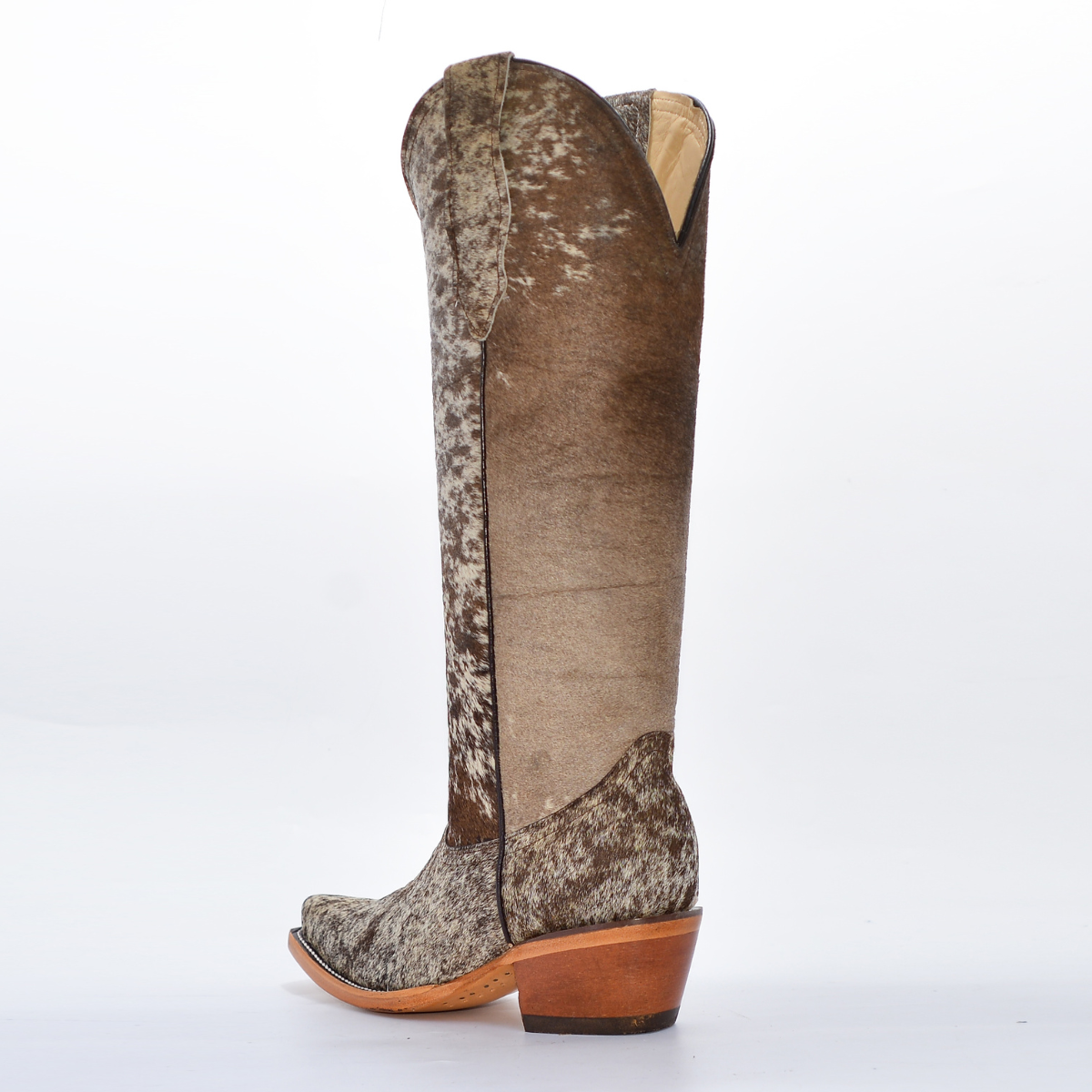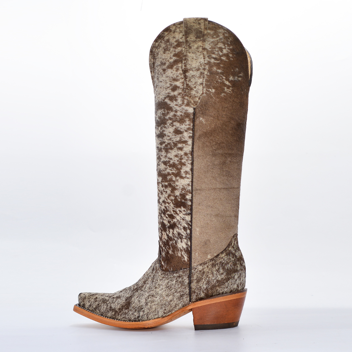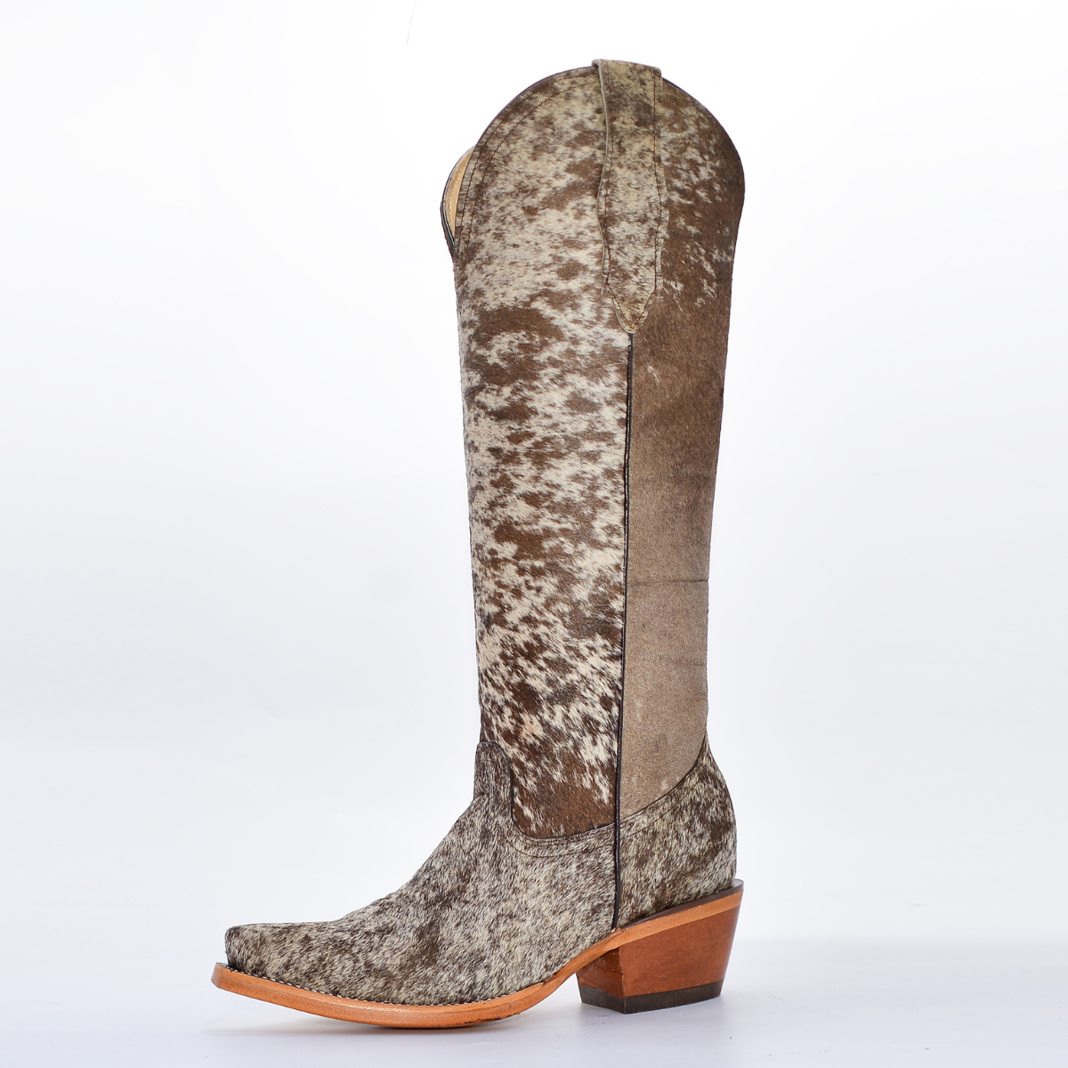 Atrévete a destacar con una pieza única de colección. Esta bota para dama combina la elegancia del diseño vaquero tradicional con el lujo de la piel con pelo natural. Su textura suave y sus patrones orgánicos hacen que cada bota sea una obra de arte irrepetible, ideal para la mujer que busca un estilo audaz, sofisticado y auténtico.