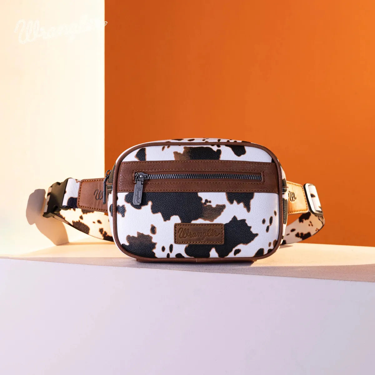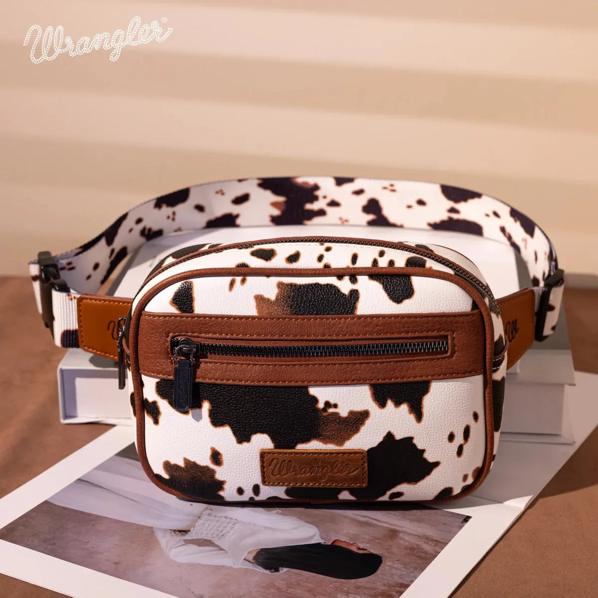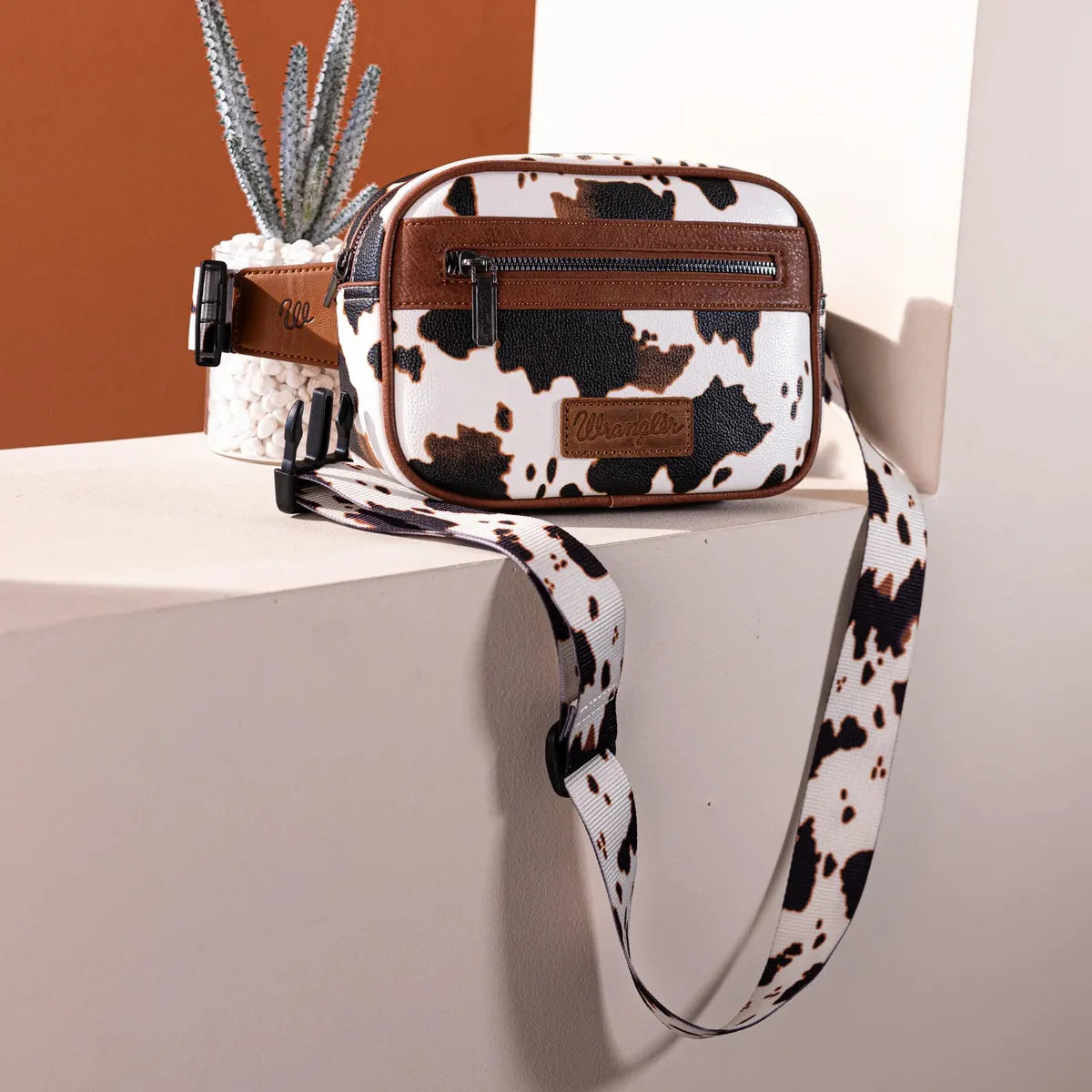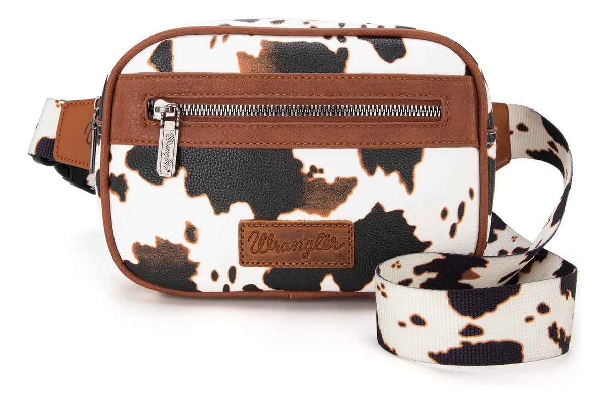 Cangurera Wrangler Mujer Modelo WG133-194BR | Estampado Piel de Vaca | Correa Ajustable