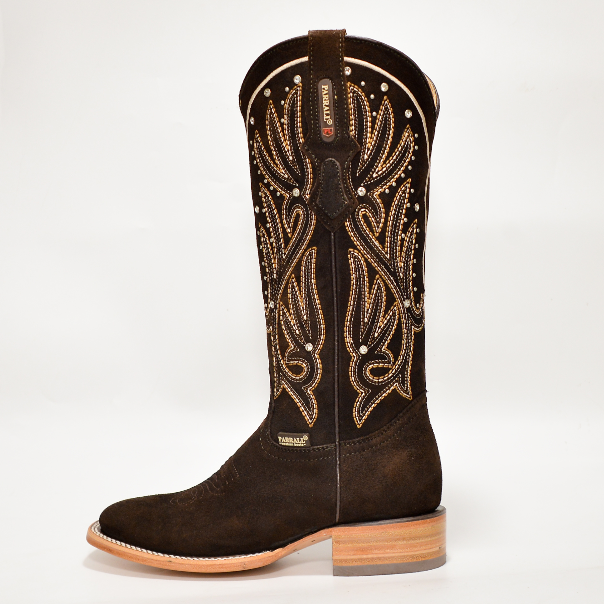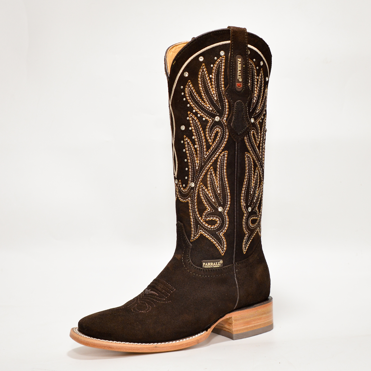 Bota Vaquera de Mujer Parral Chocolate con Bordado y Gamuza Fina