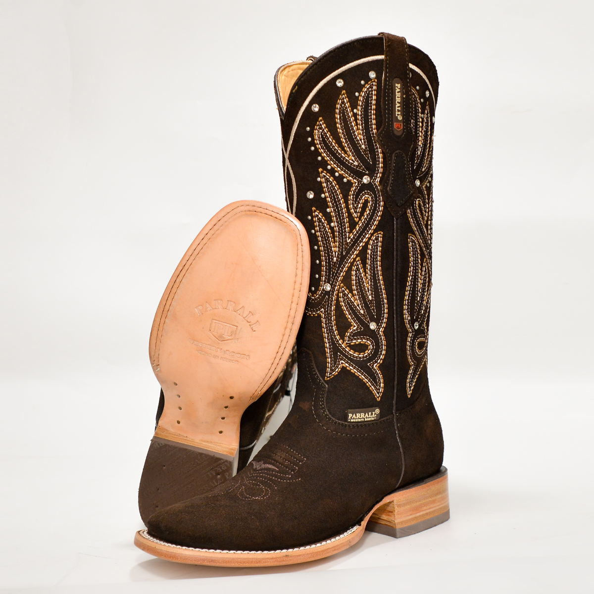 Suela: Cuero natural con grabado Parral Boots.