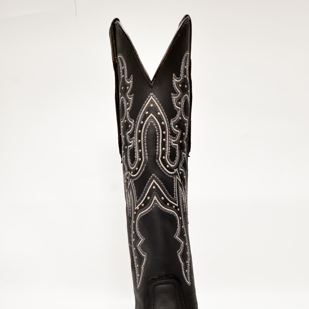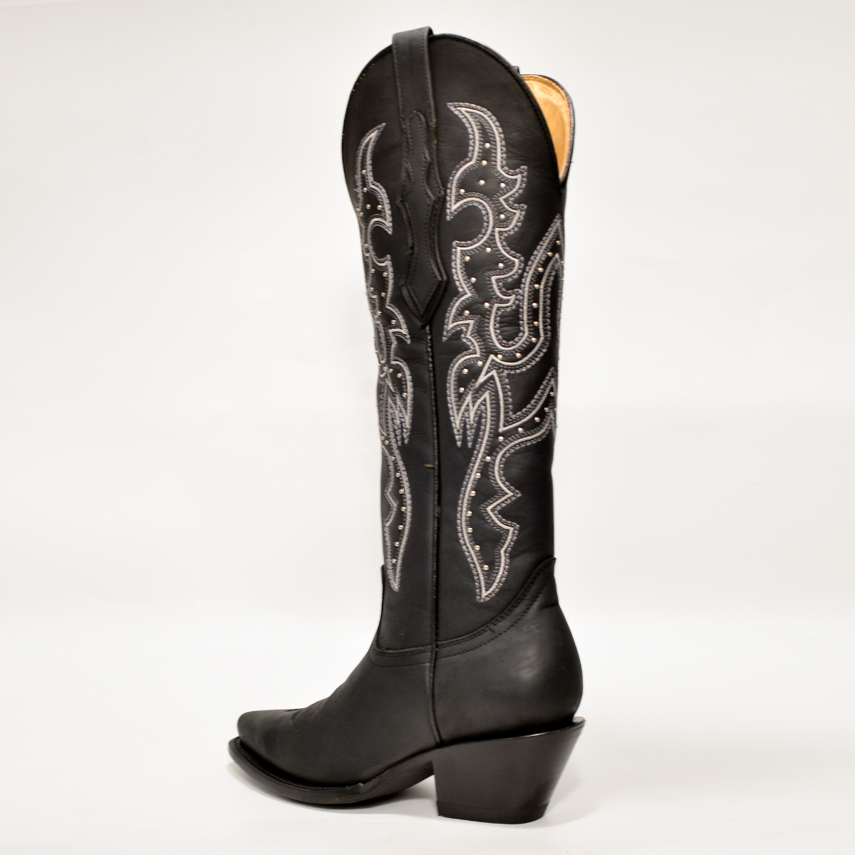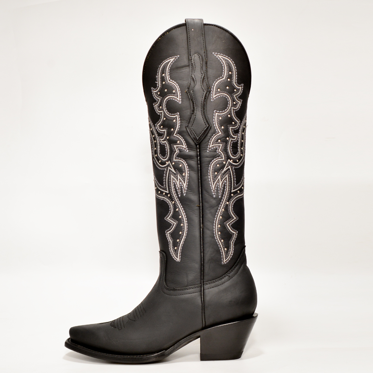 Bota Vaquera de Mujer Negra con Bordado Plateado y Tacón Tradicional