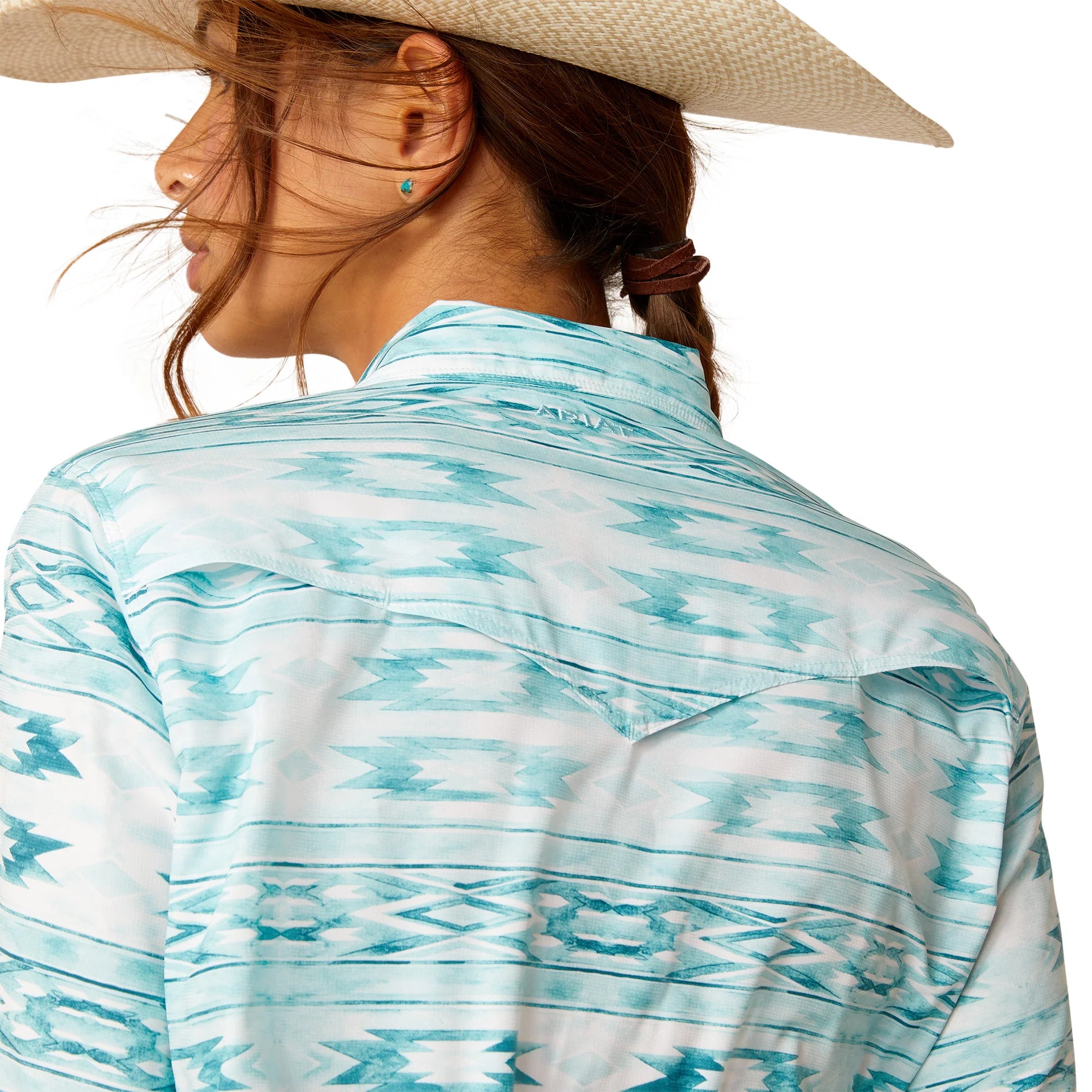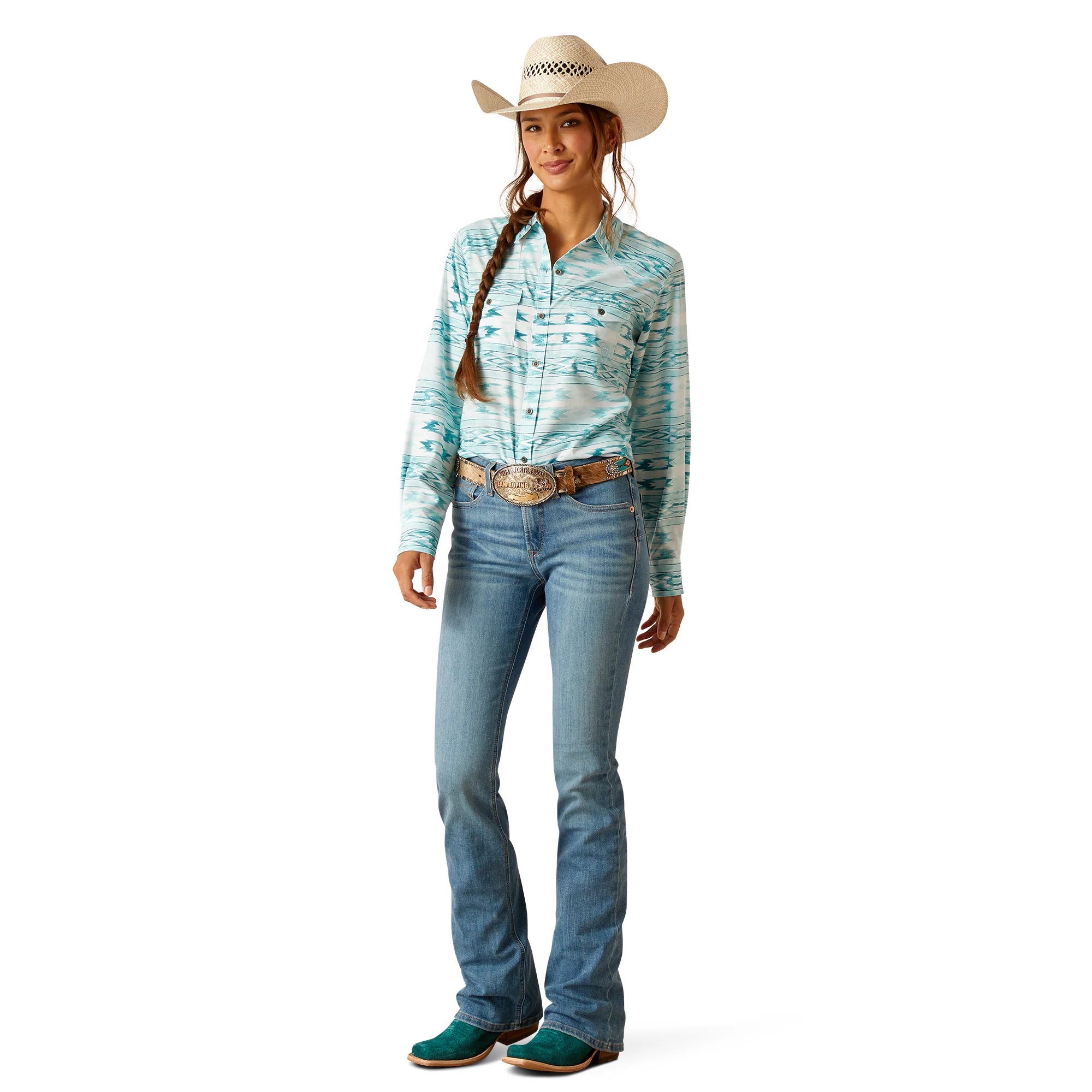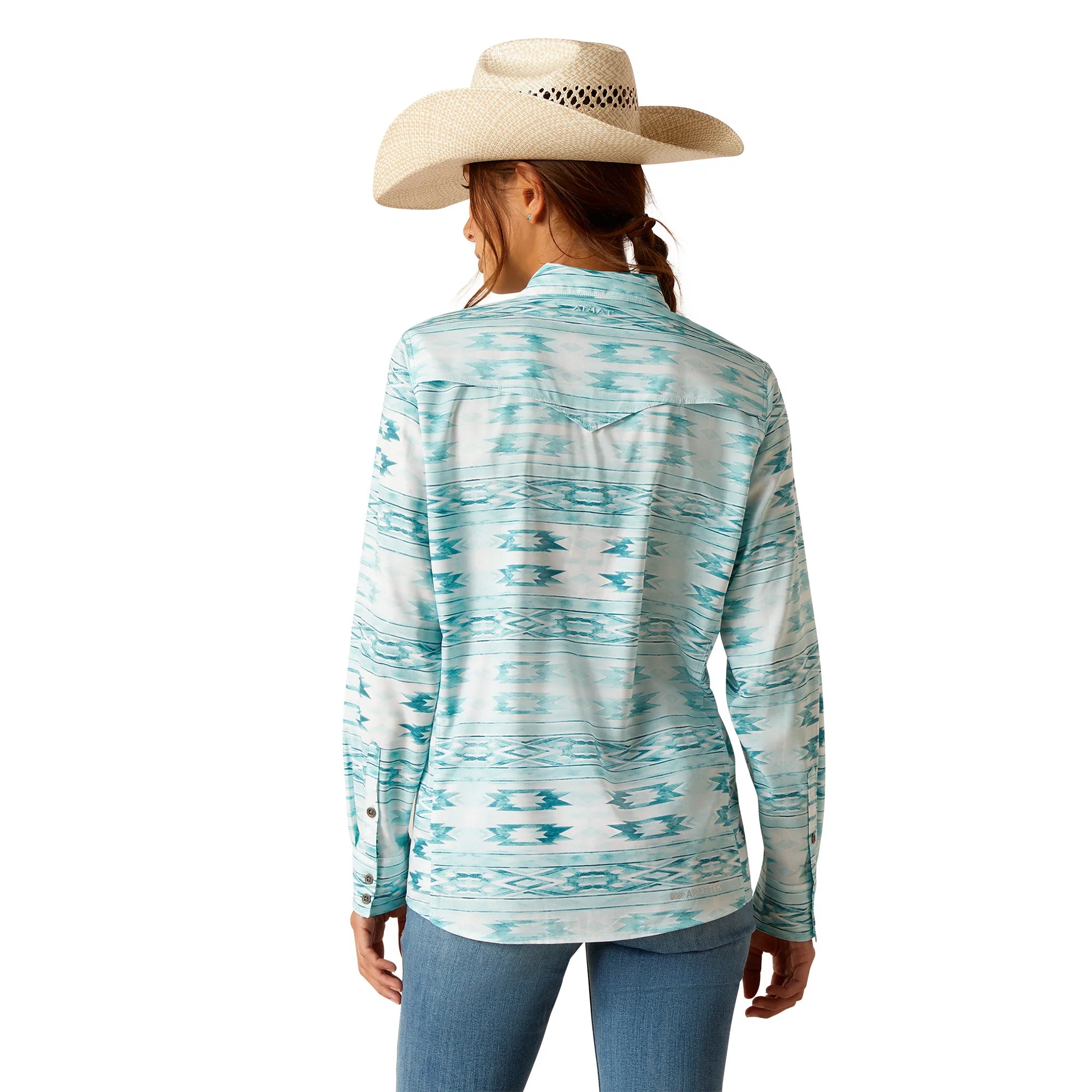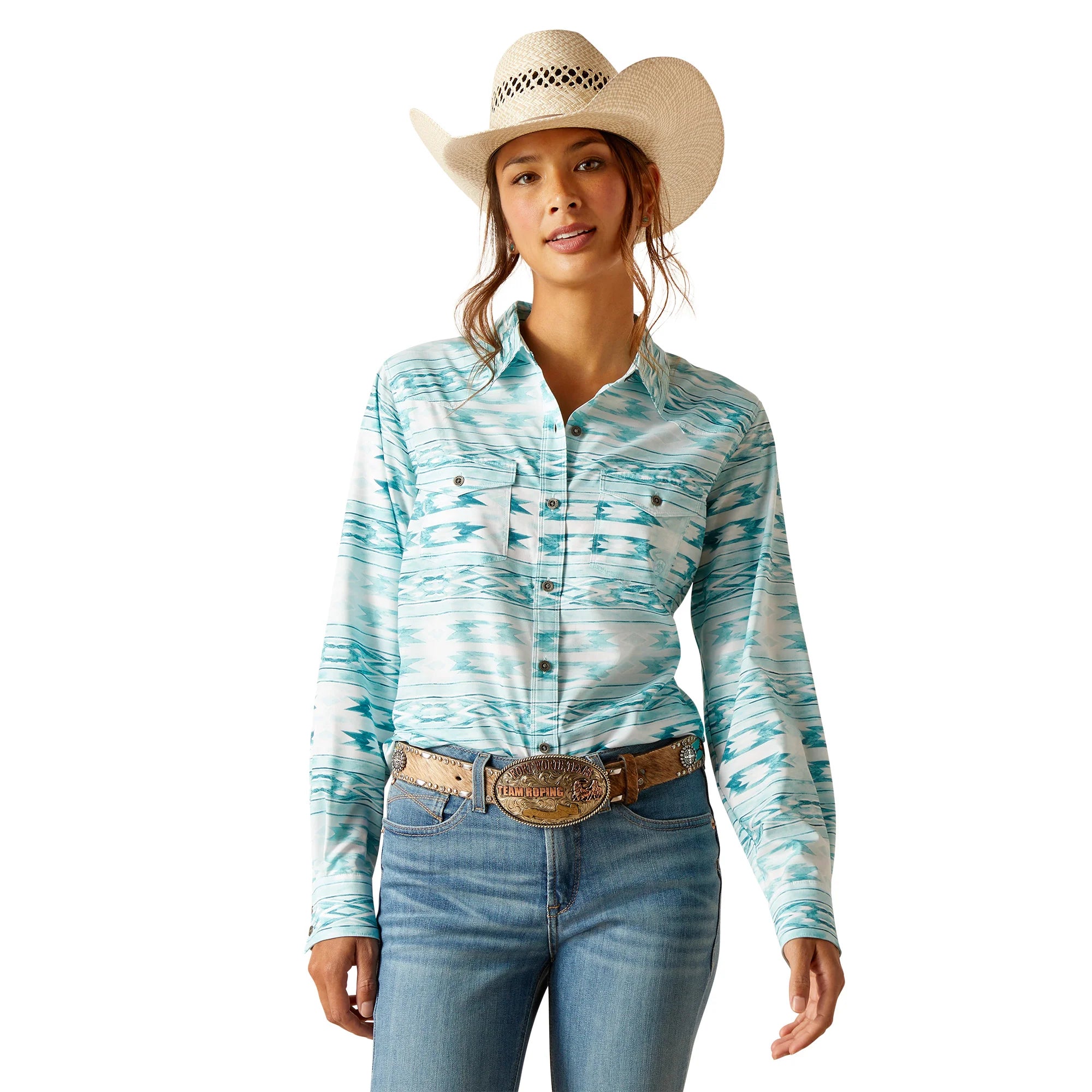 Esta camisa Ariat con botones delanteros, probada y preparada para montar, cuenta con paneles laterales VentTEK™ para la circulación del aire y tecnología de absorción de la humedad.