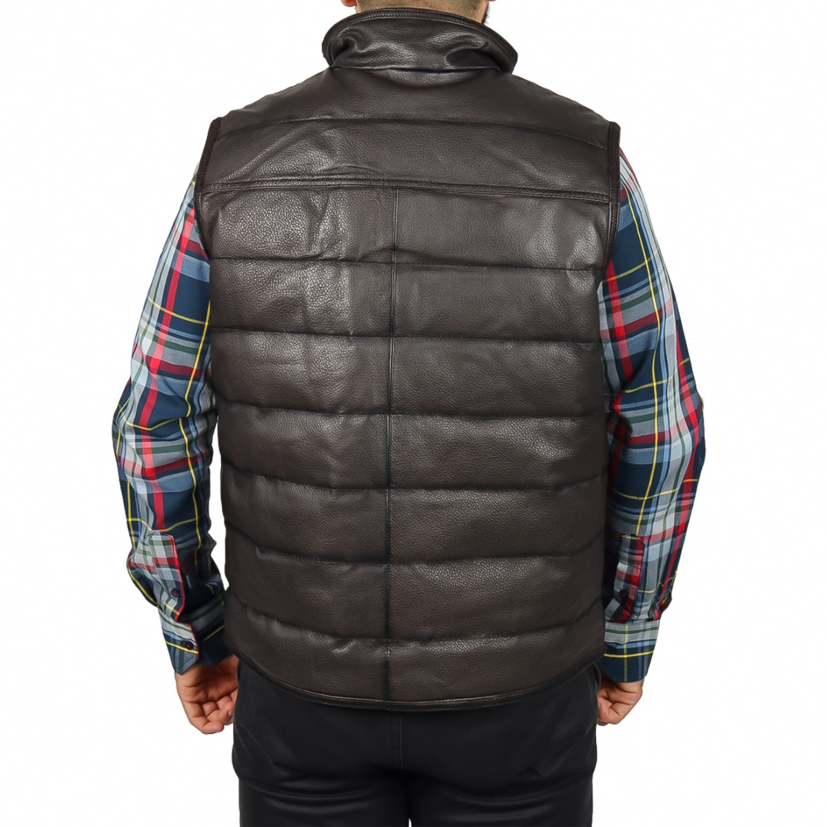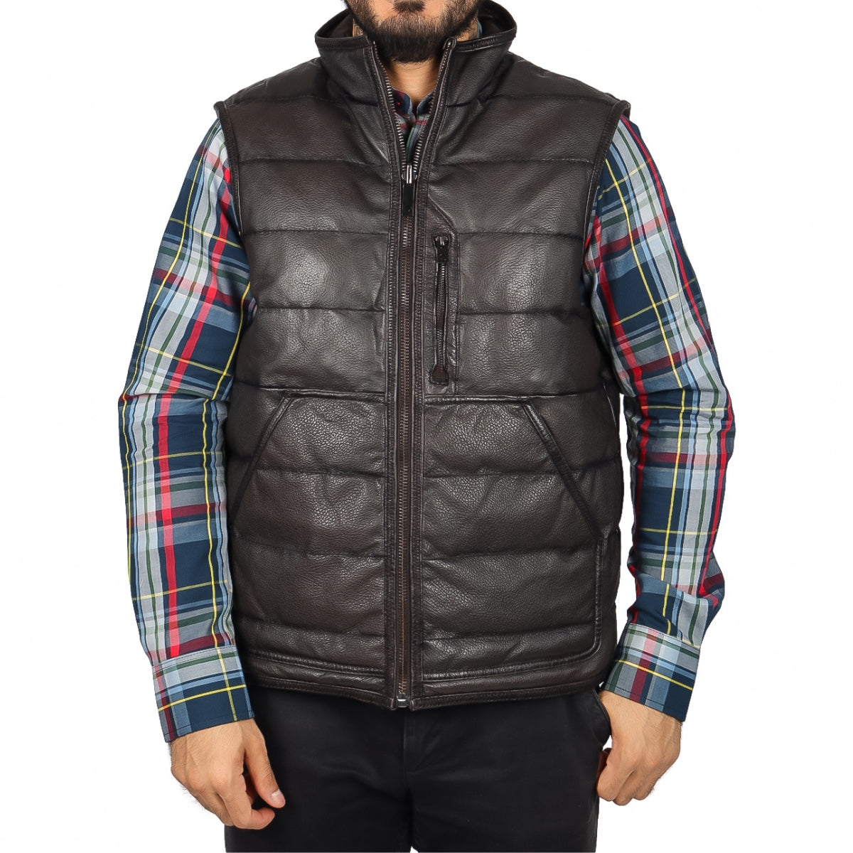 Doble vista: Este chaleco para hombres cuenta con una vista exterior de piel de ovino marrón y una vista interior de tela, brindando versatilidad y comodidad.
