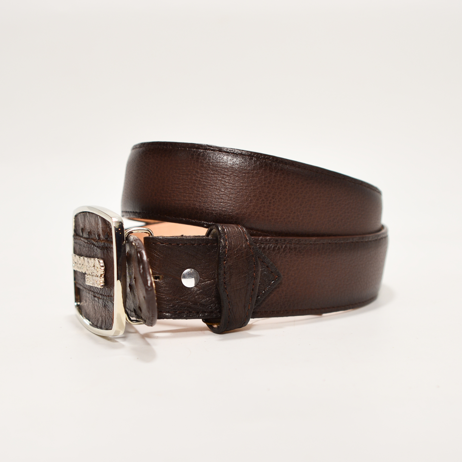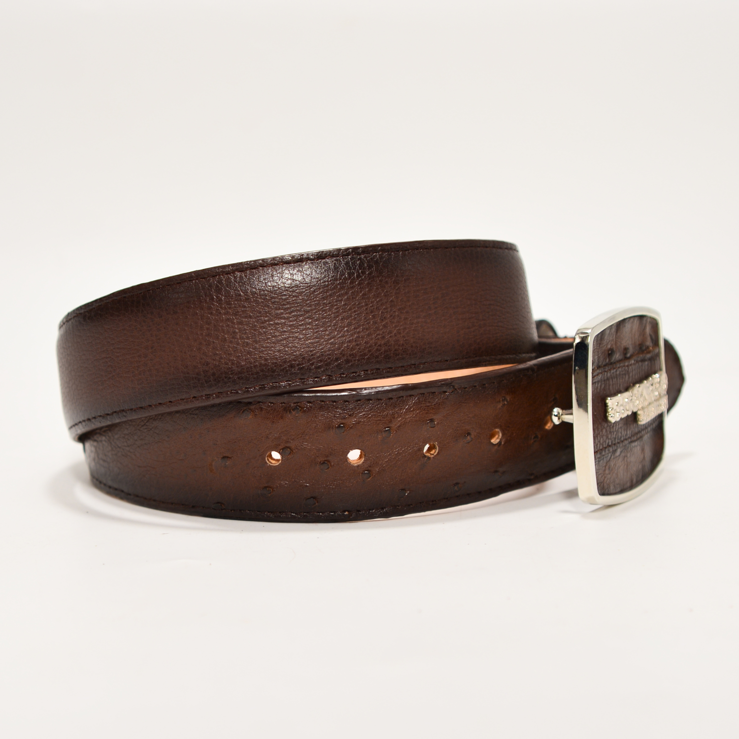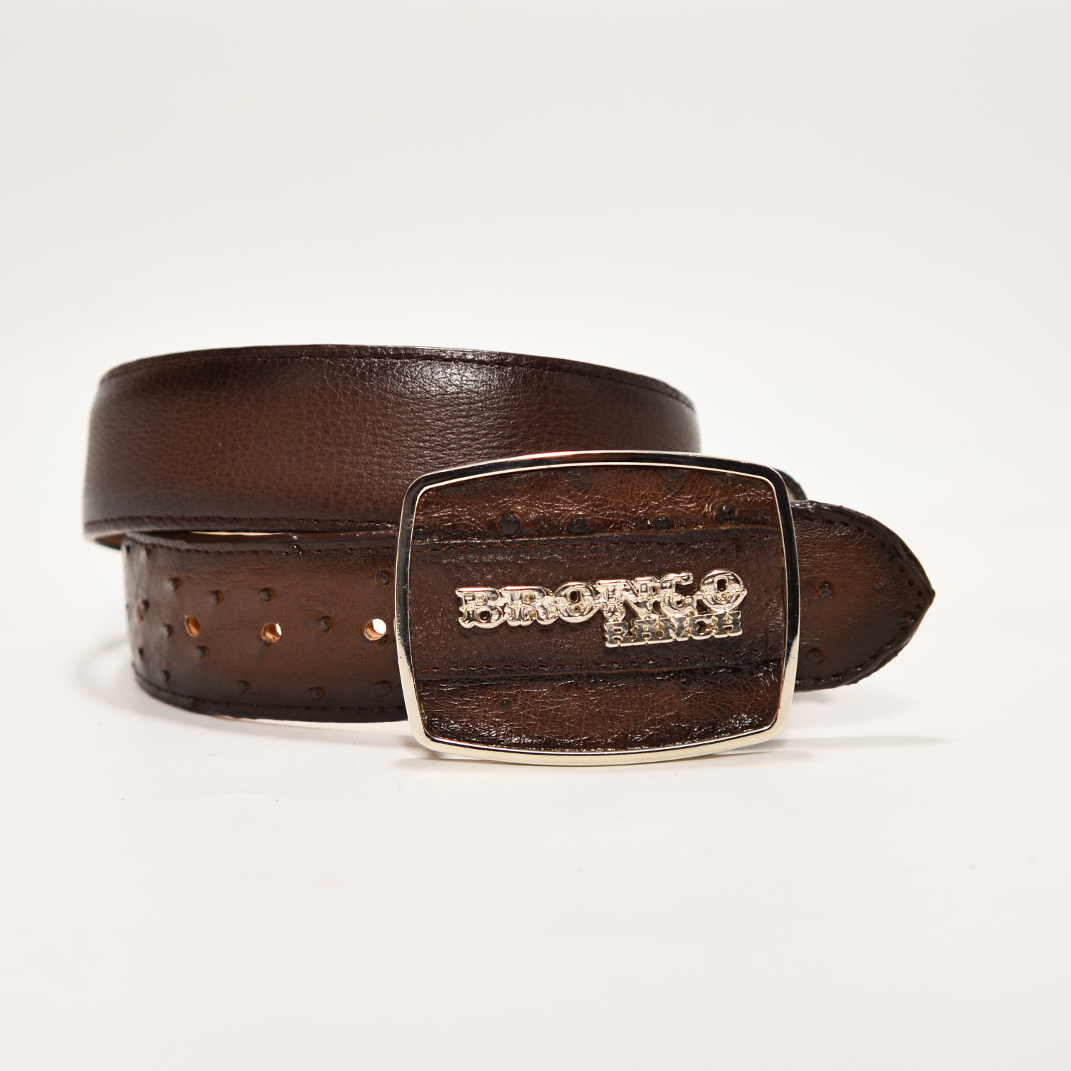 Cinturón Exótico de Piel de Avestruz Café Oscuro BRONCO RANCH