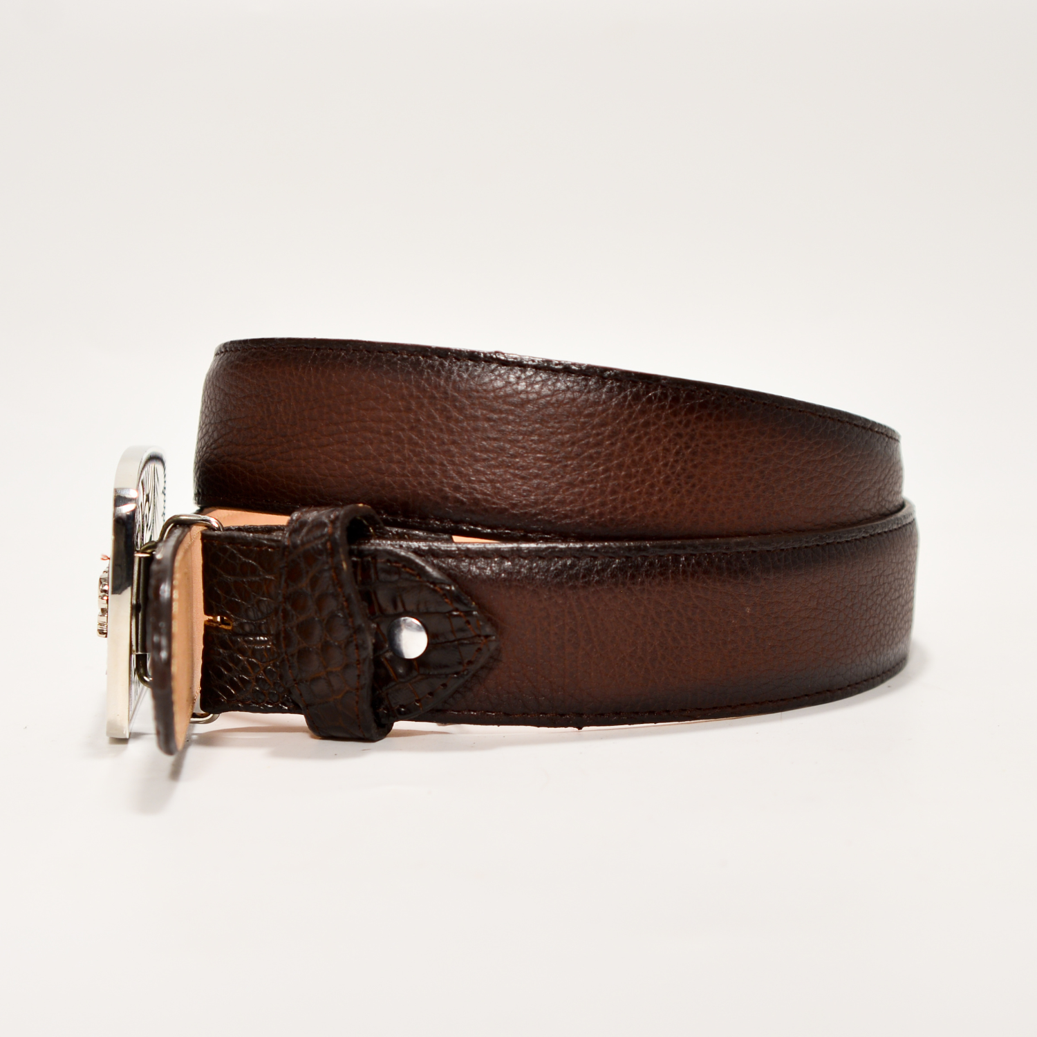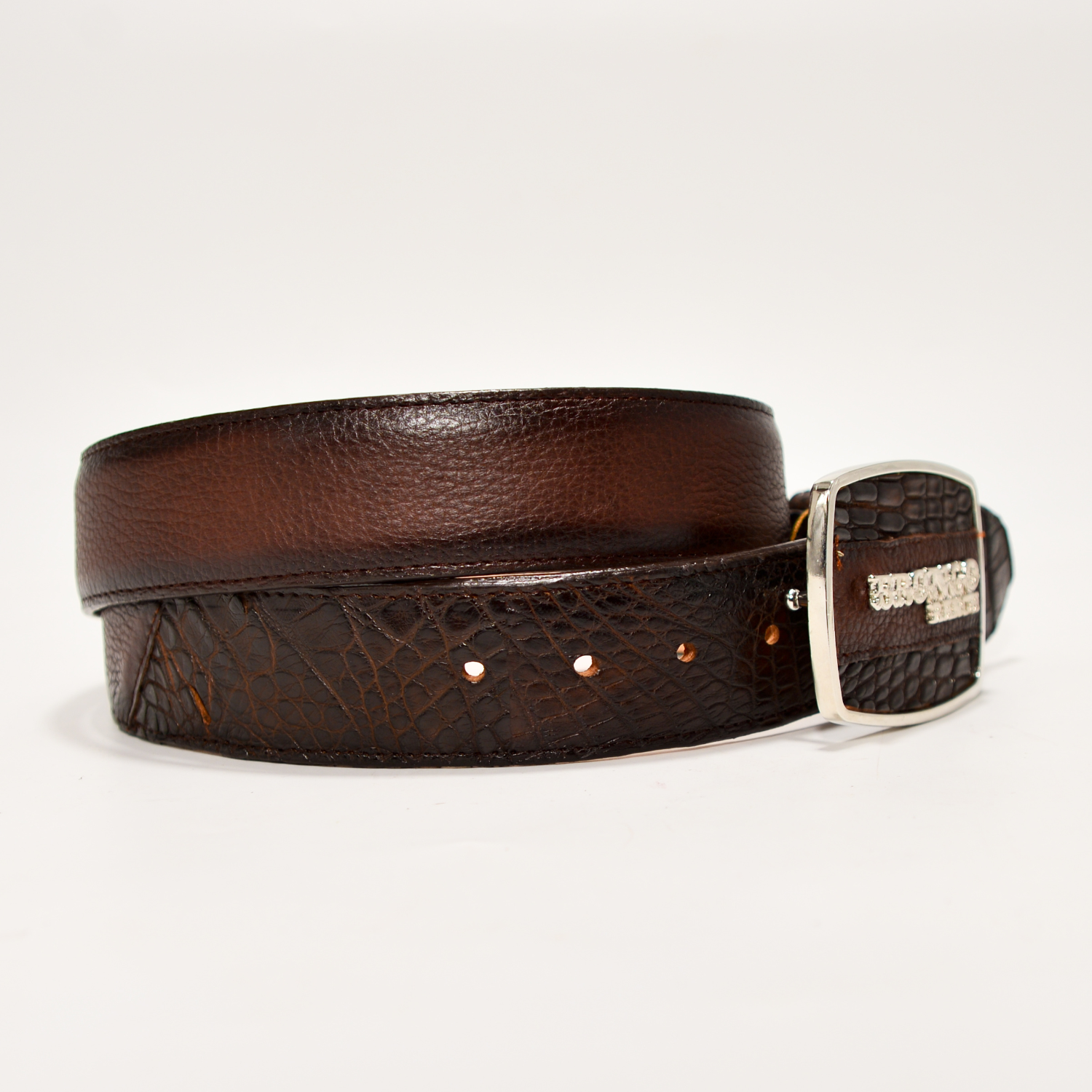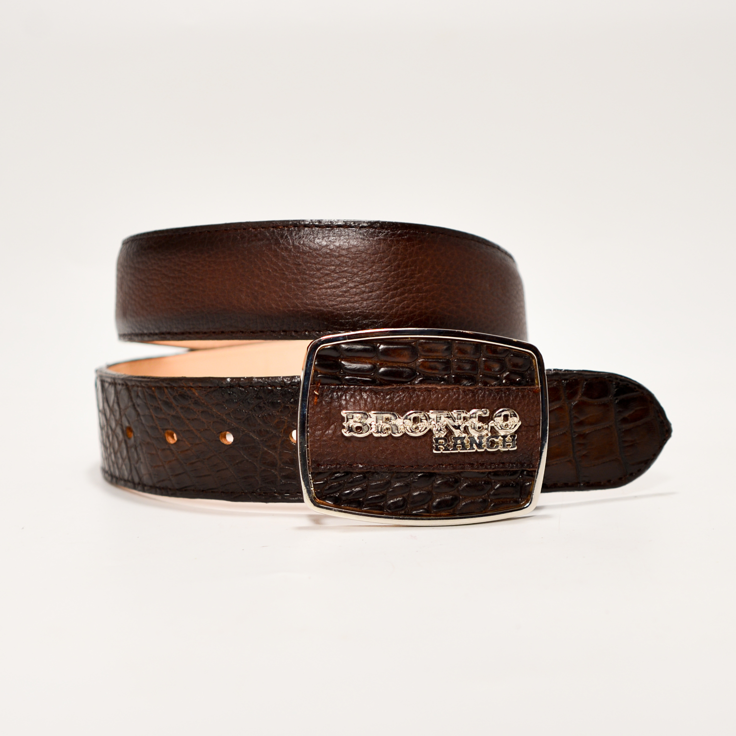 Cinturón Exótico de Piel de Lagarto Café BRONCO RANCH