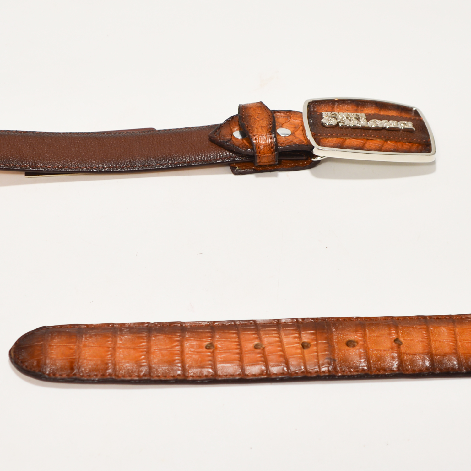 Cinturón de Piel de Cocodrilo Coñac BRONCO RANCH