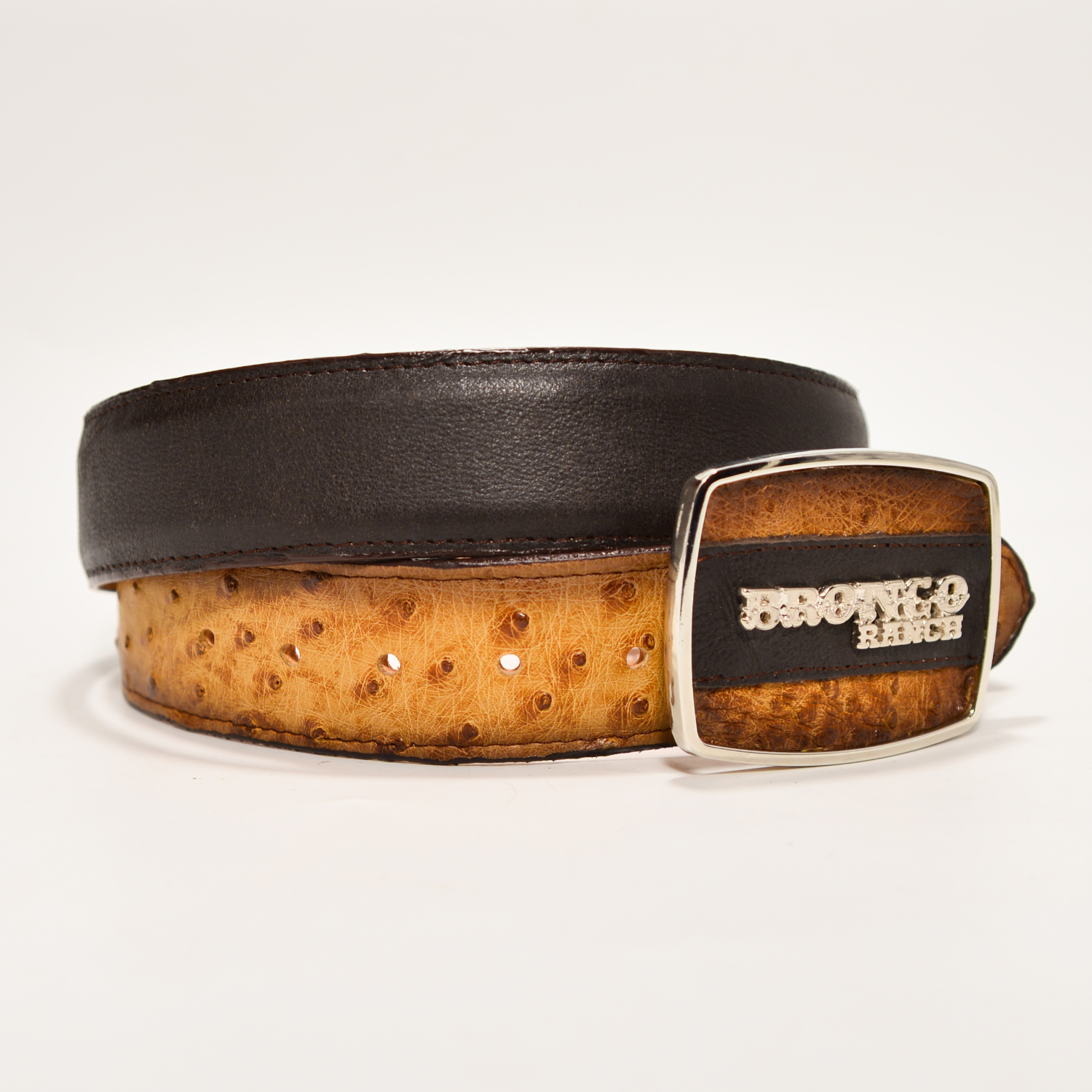 Cinturón Vaquero de Piel de Avestruz Orix BRONCO RANCH Este cinturón vaquero artesanal de piel auténtica de avestruz en tono orix es una pieza de lujo para quienes saben que el estilo está en los detalles. Combina textura exótica, diseño vaquero clásico y acabados de alta calidad.