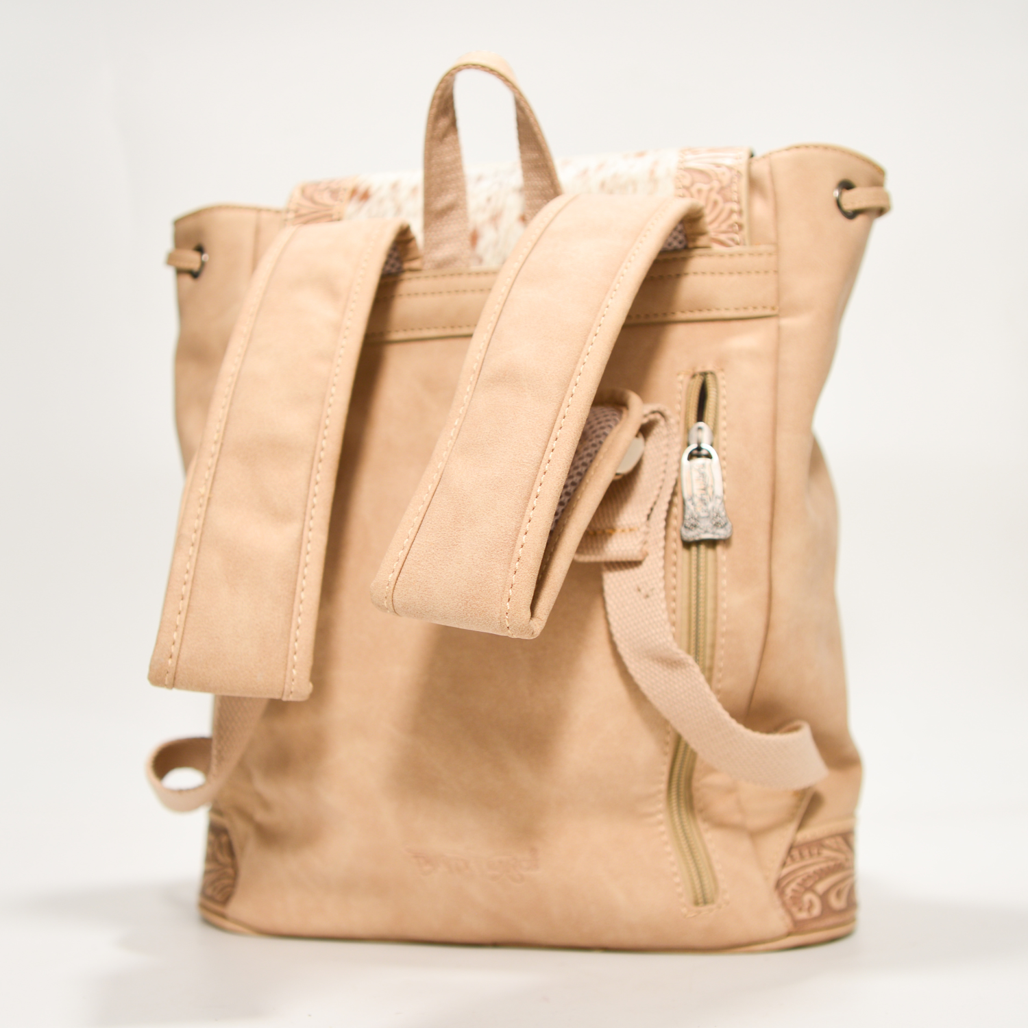 Mochila Vaquera Artesanal De Piel Con Pelo Y Grabado Floral 9110t