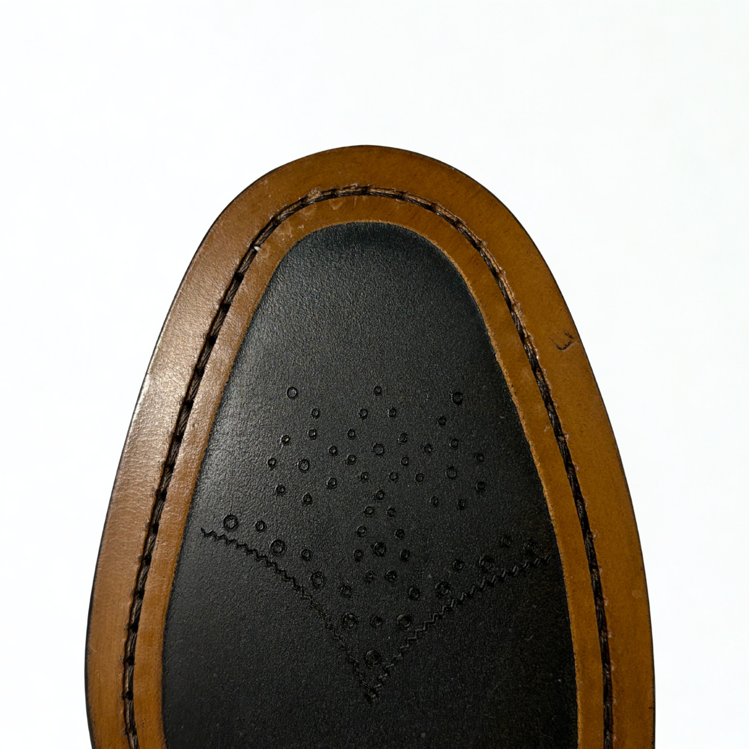 Suela de cuero: Con aplicaciones de hule para mayor resistencia y seguridad al caminar.