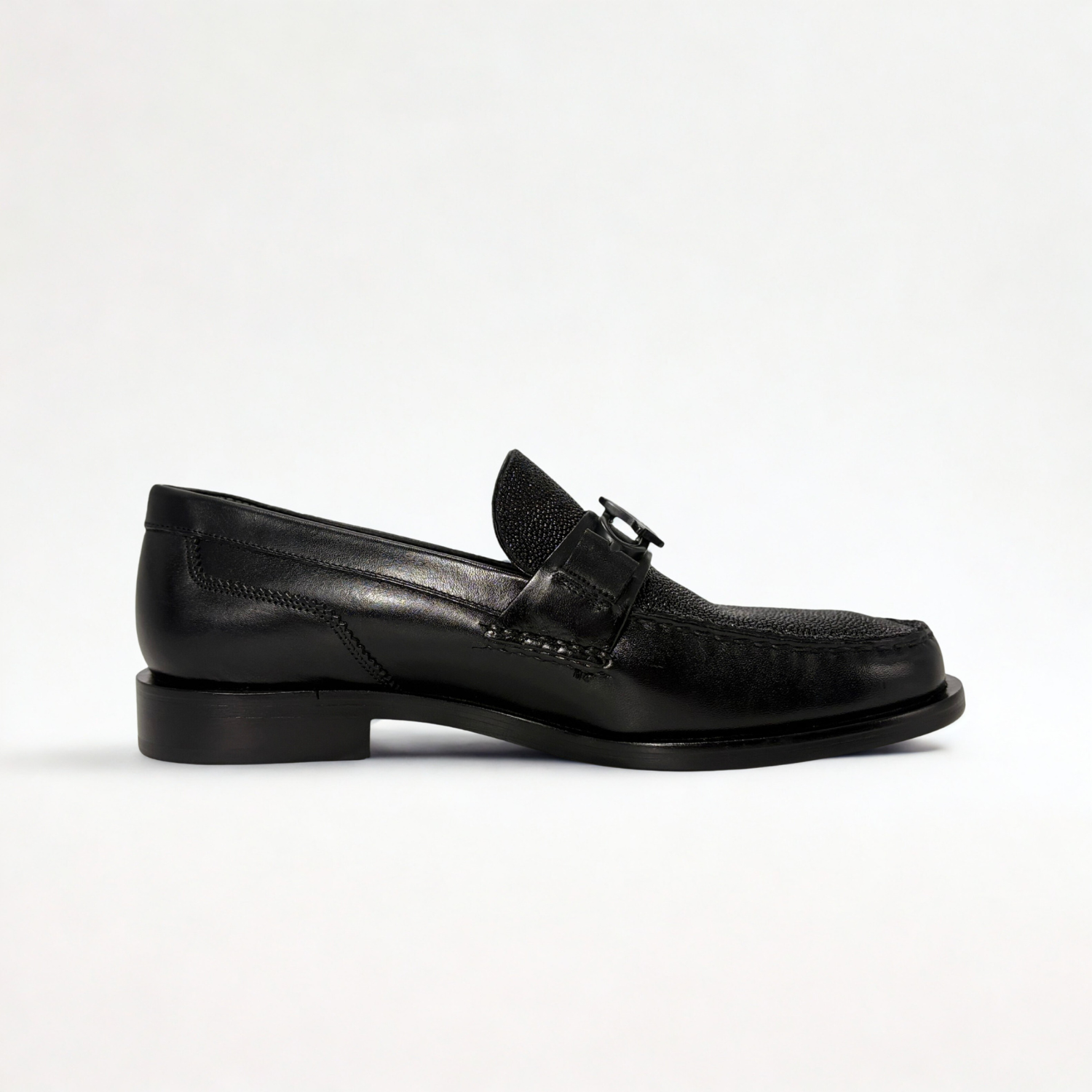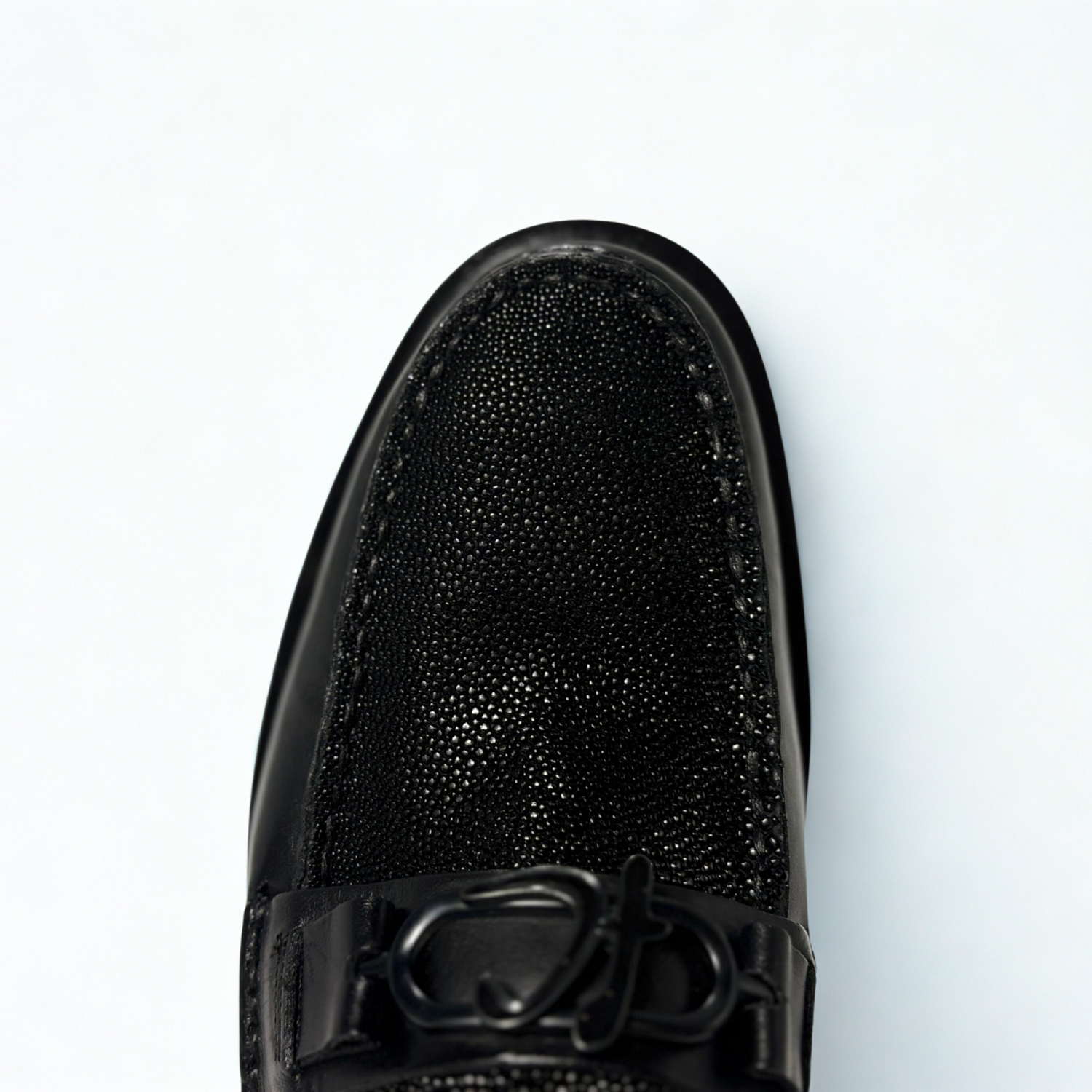 Calzado de lujo diseñado para el hombre que busca sofisticación y confort en cada paso. Estos mocasines combinan piel genuina de mantarraya con piel de res, ofreciendo un diseño exclusivo que refleja distinción y estilo contemporáneo.