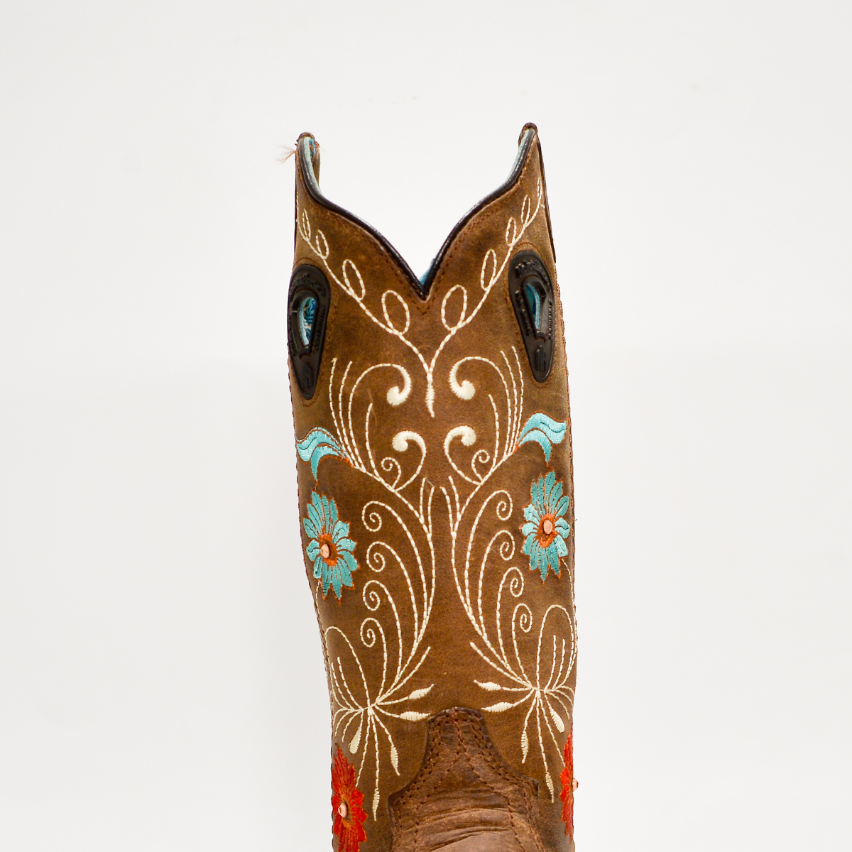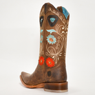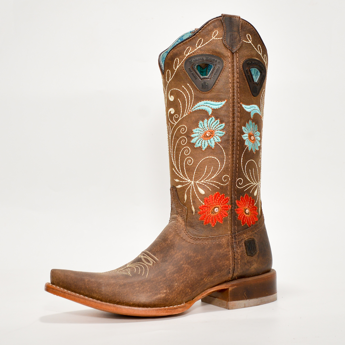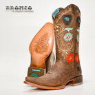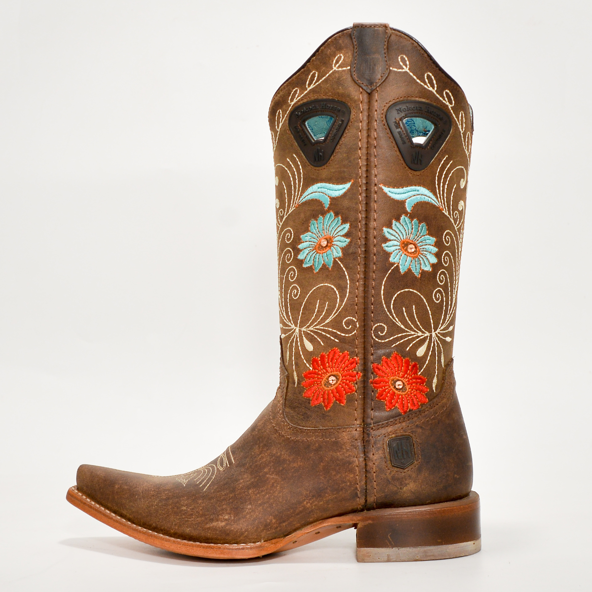 Bota Vaquera Nokota Horse Power para Mujer – Piel Café con Bordado Floral Multicolor