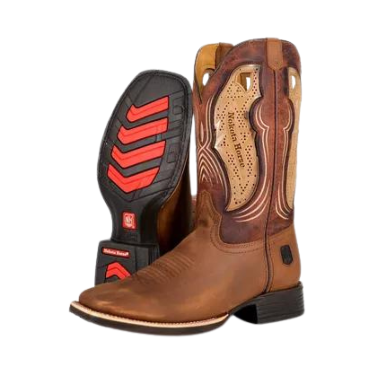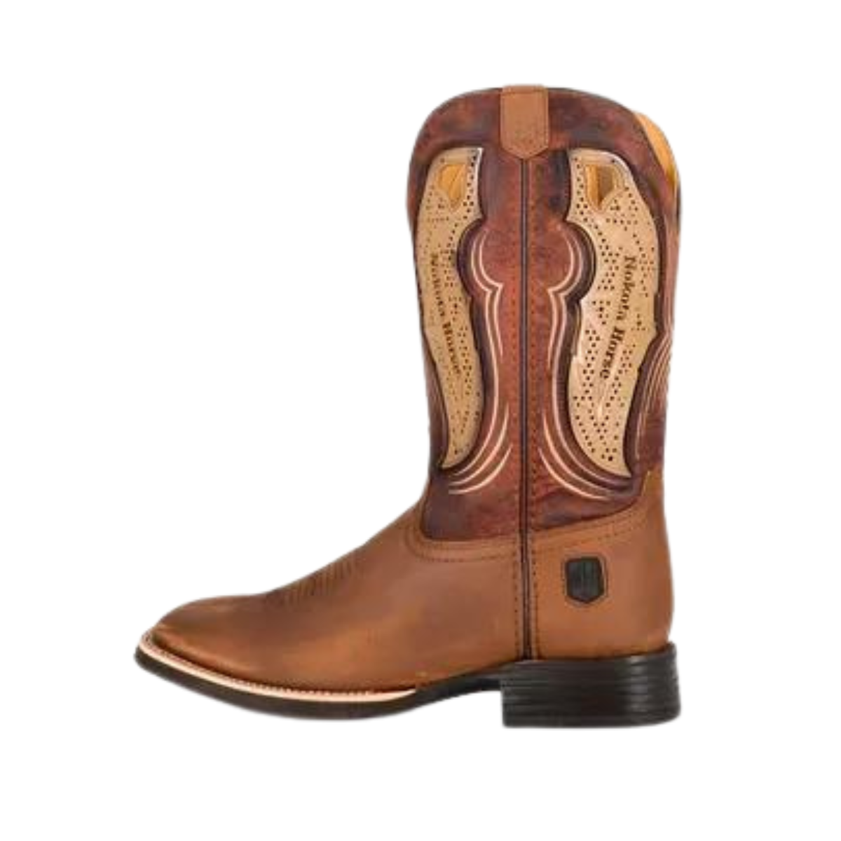 Bota vaquera para caballero punta cuadrada color miel, con diseño de ventilación en el tubo lo mejor para los vaqueros.