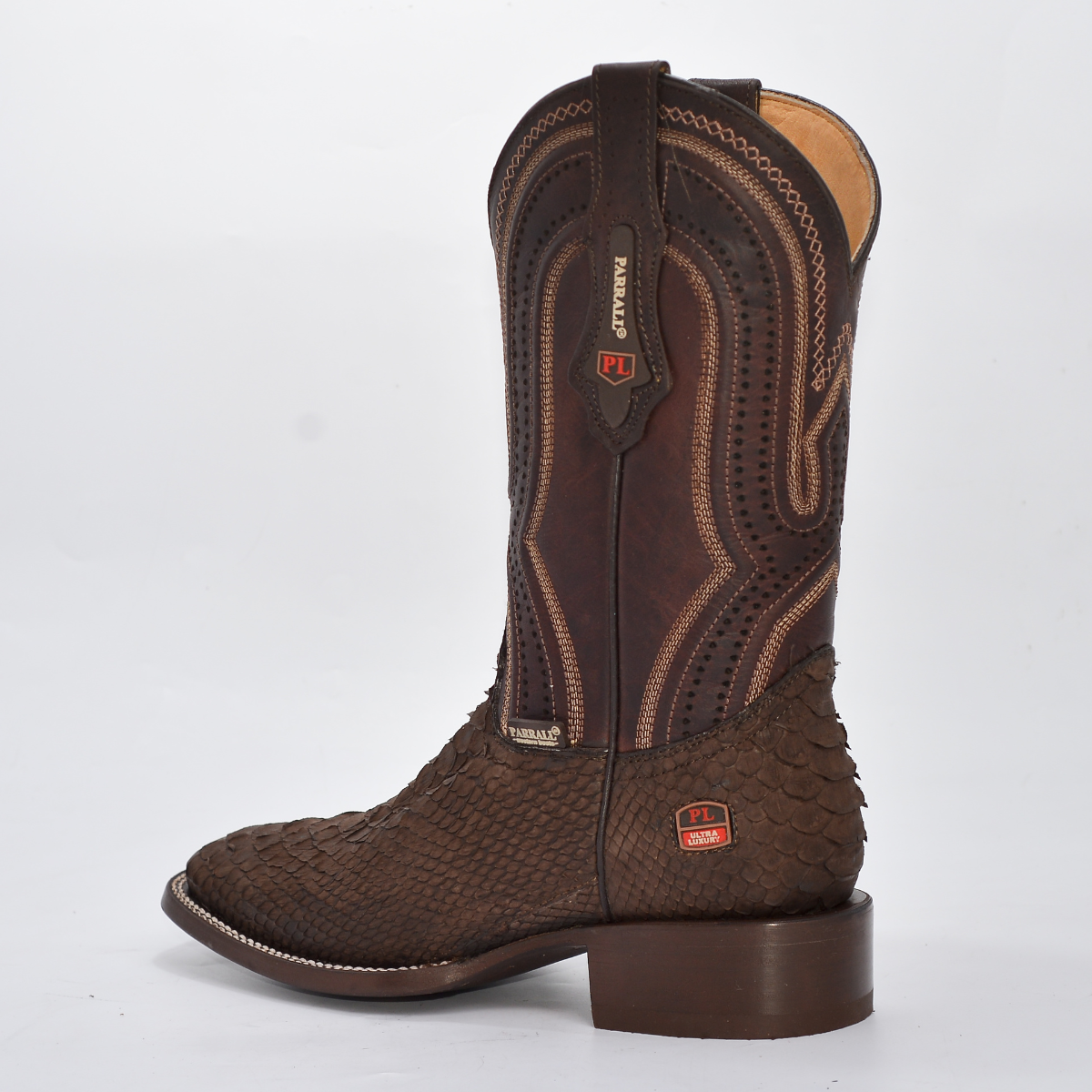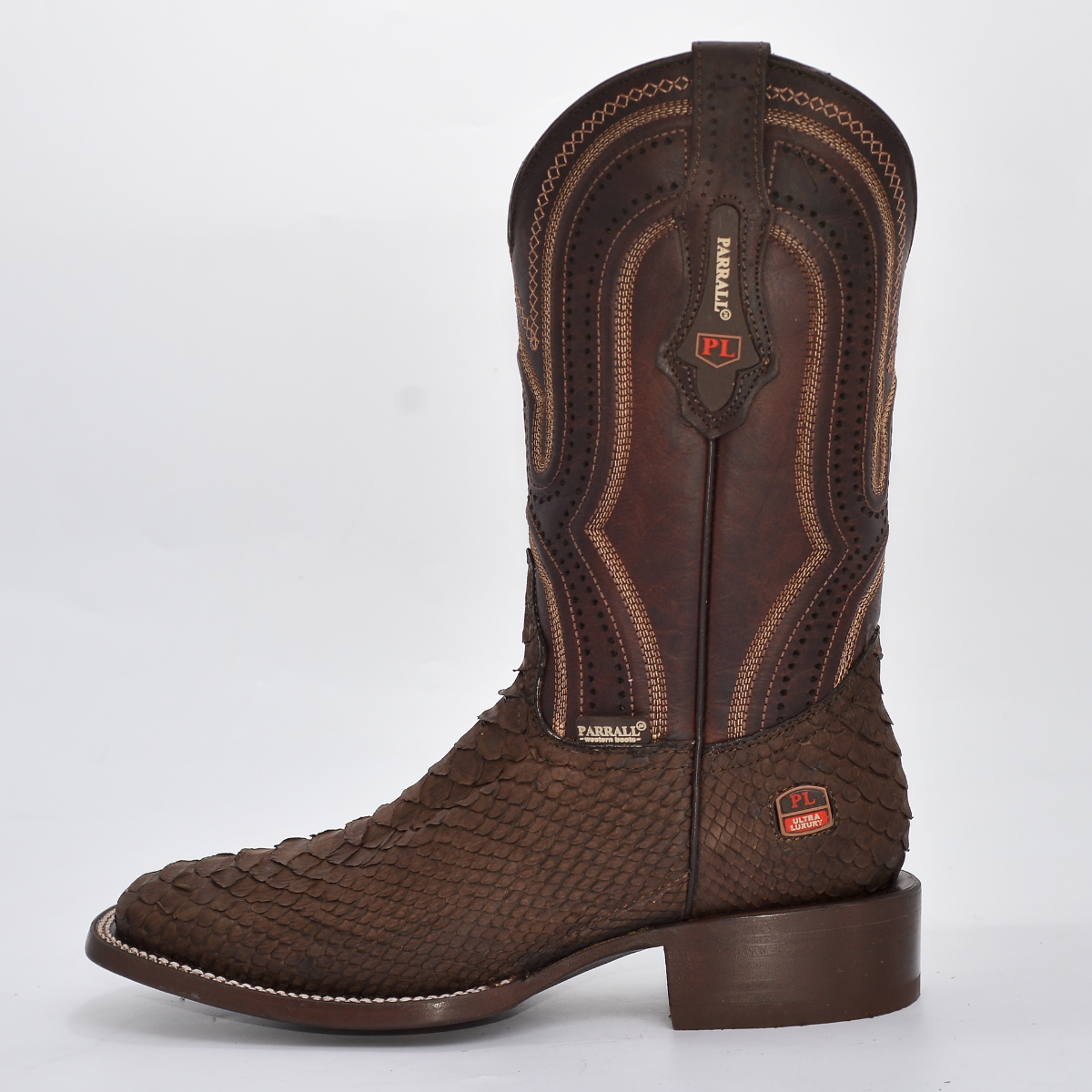 🐍 Bota Vaquera PARRAL Caballero - Piel Exótica Genuina PITÓN CAFÉ | Horma Cuadrada