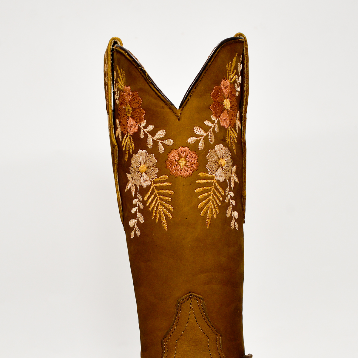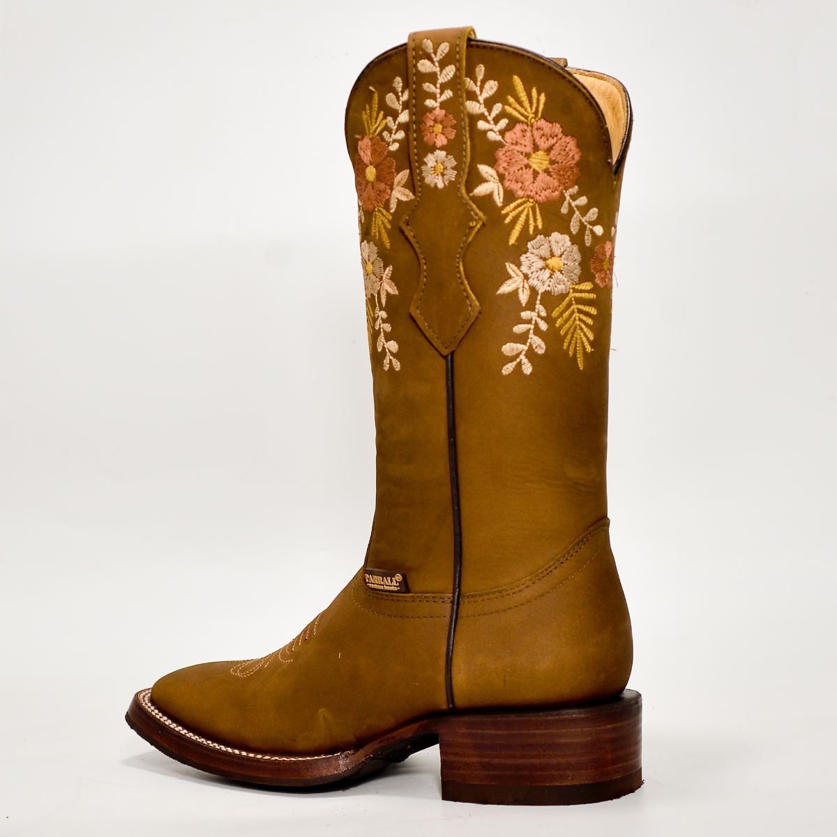 👢 Bota Vaquera Parral Boots para Mujer – Piel Miel con Bordado Floral Multicolor