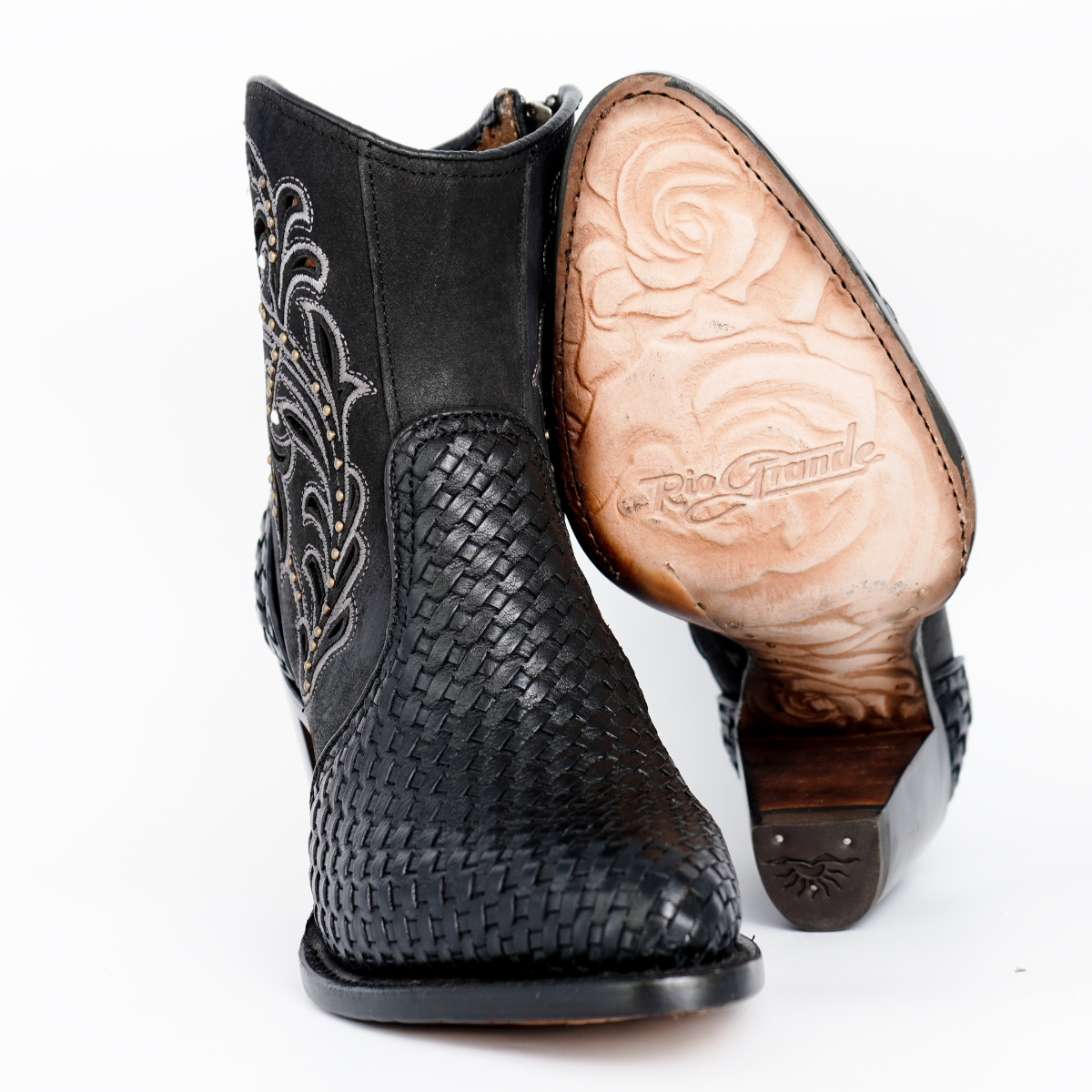 Bota Dama Rio Grande Petatillo Negro suela de cuero