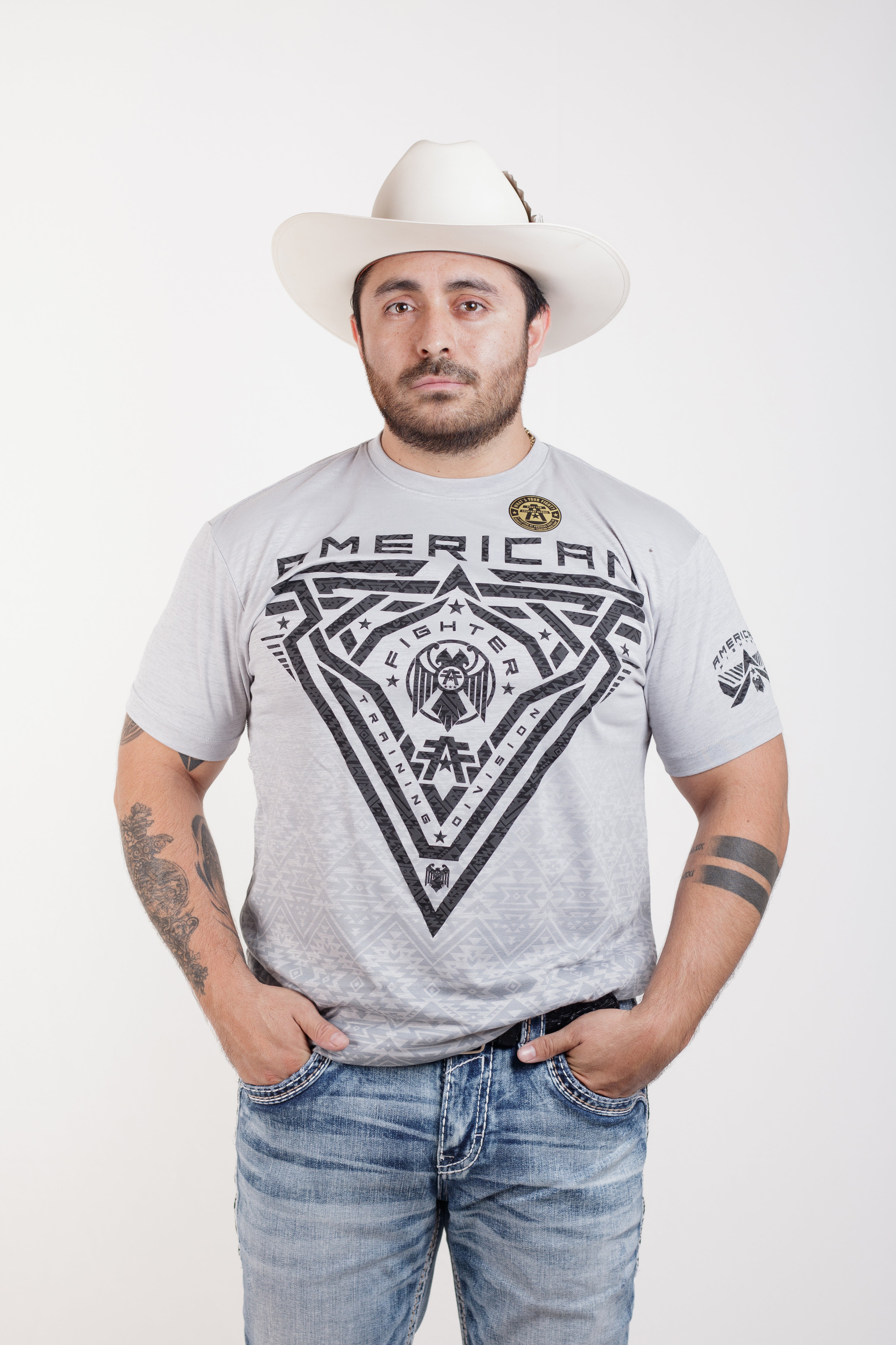 Playera Para Caballero, American Fighter Gris Claro 5899