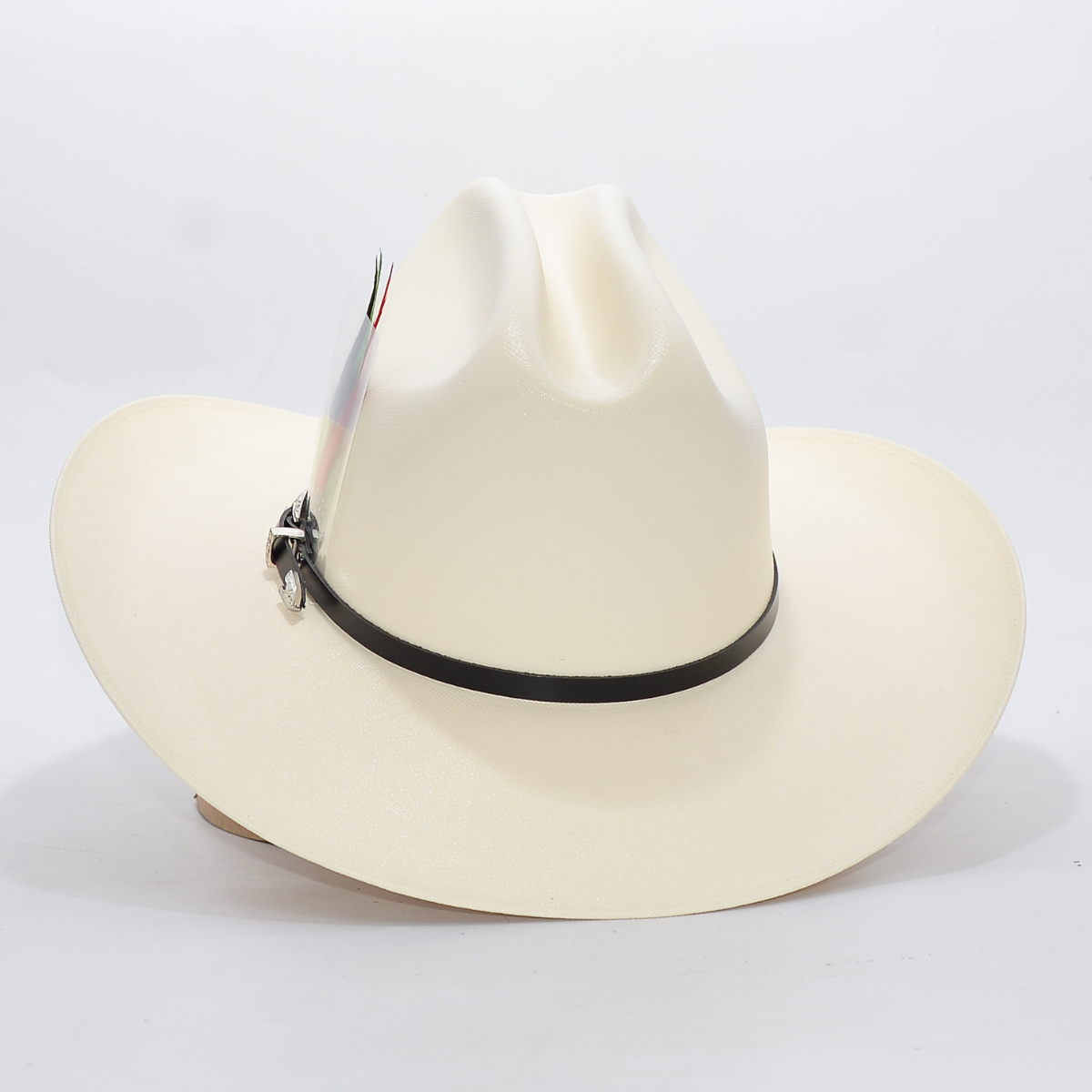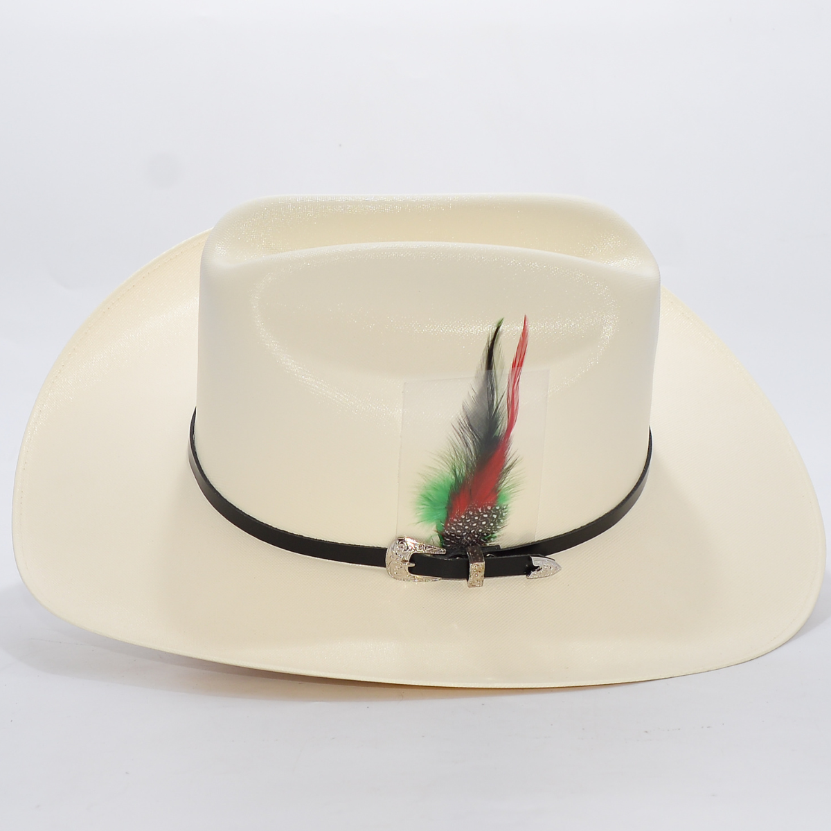 Toquilla Variedad de estilos: Disponible con banda de estrellas metálicas o banda clásica con hebilla plateada y pluma decorativa tricolor.
