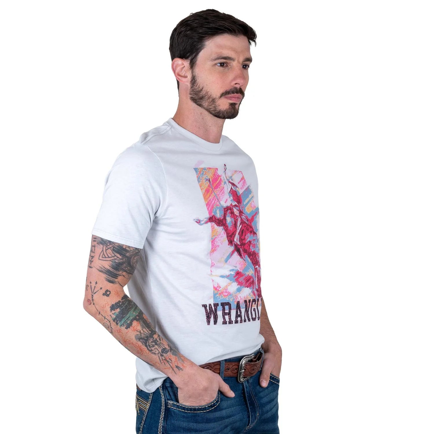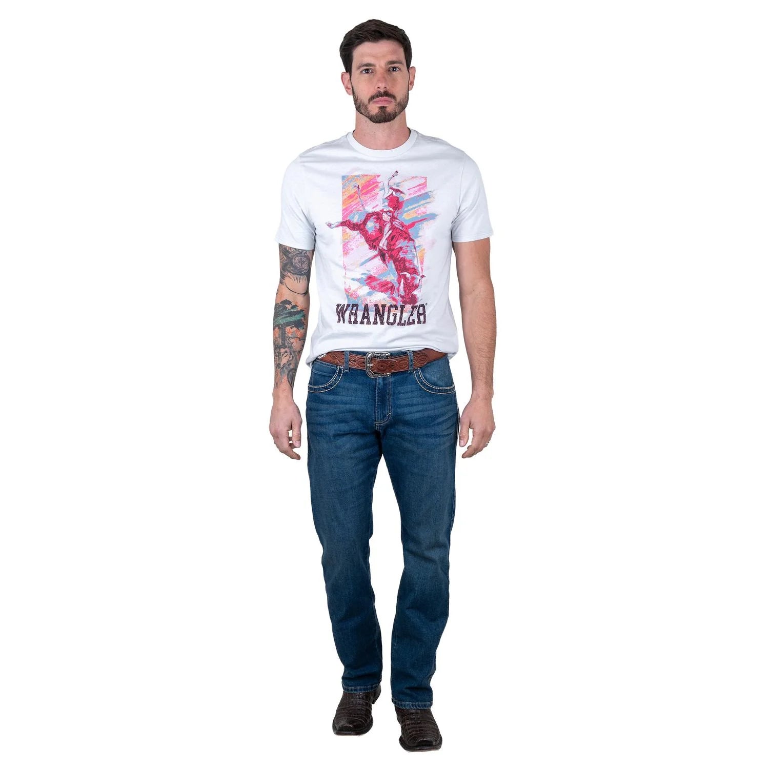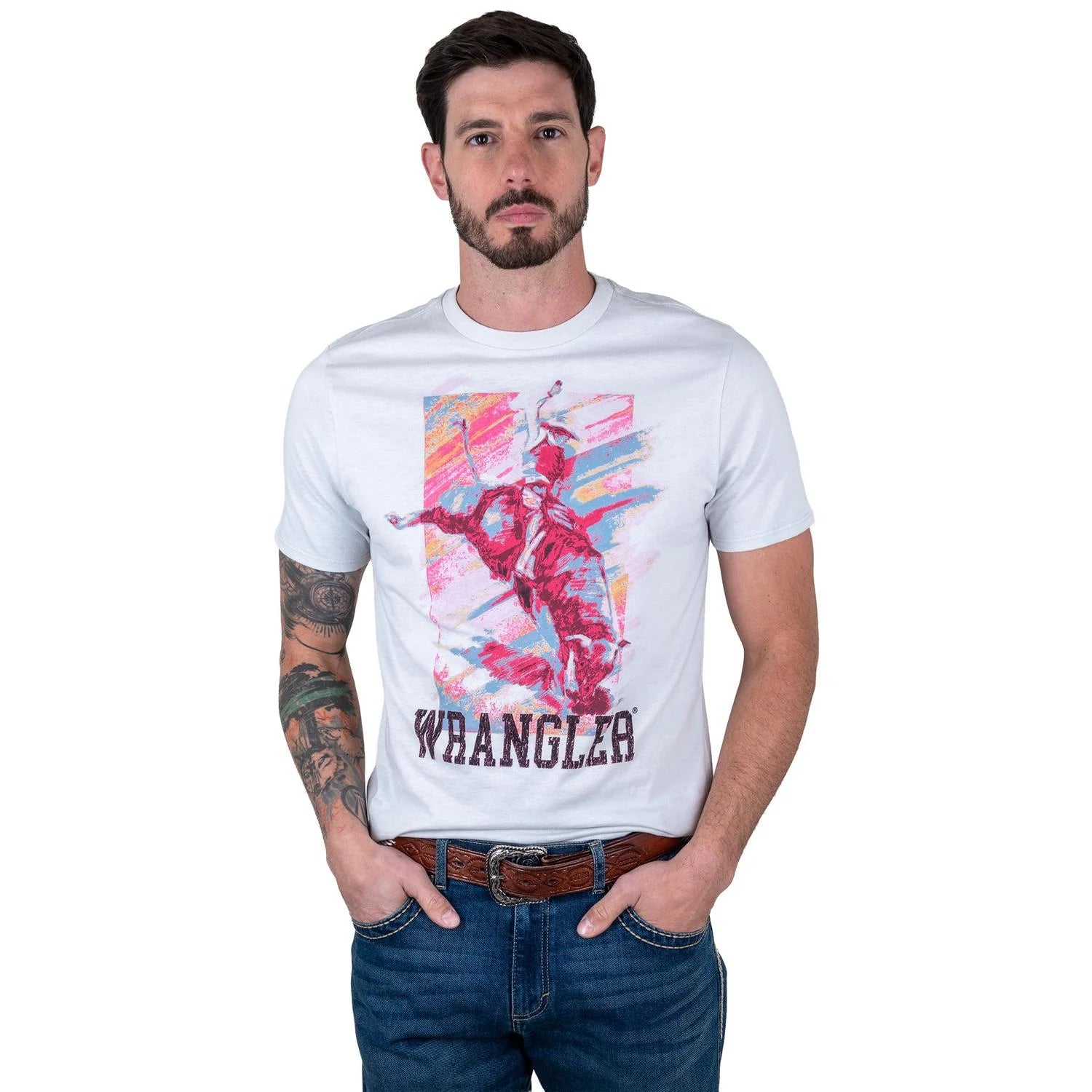 Disfruta de la comodidad y el estilo con esta playera Wrangler en un tono gris claro jaspeado. Perfecta para quienes buscan una prenda versátil con un diseño que evoca la libertad y el espíritu de la naturaleza.