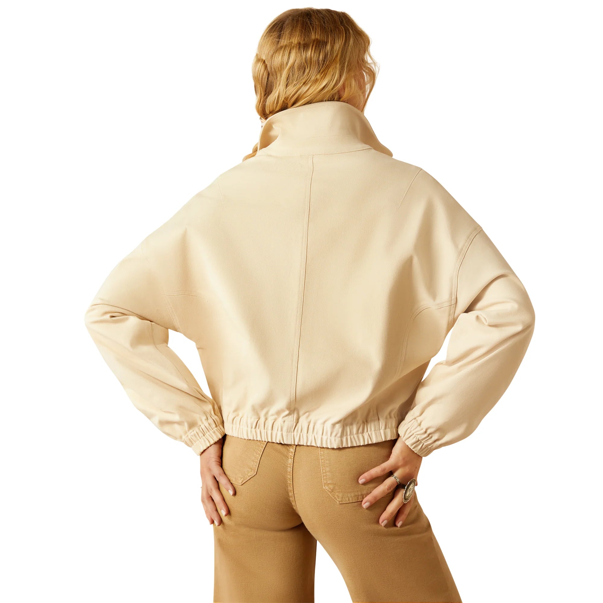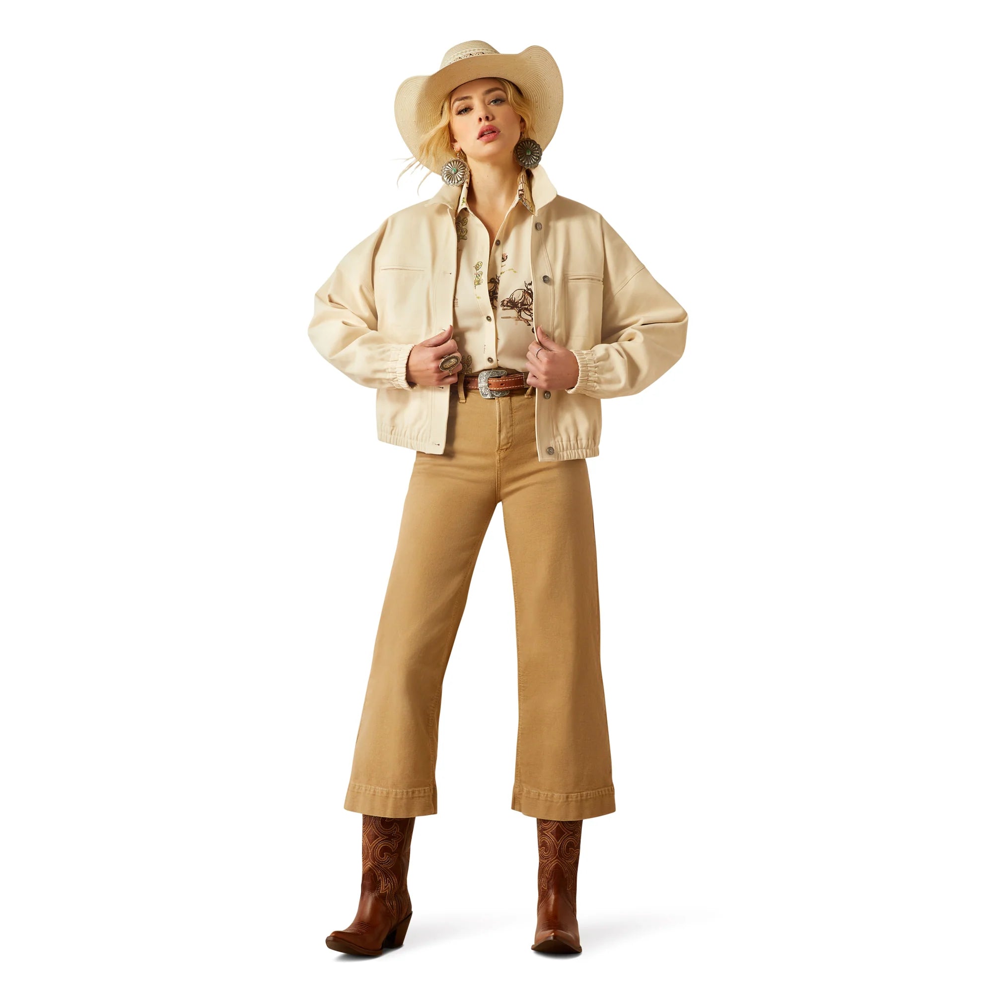 Esta prenda, una nueva versión de la chamarra vaquera, aporta un toque moderno a este básico atemporal. Confeccionada en sarga de algodón suave y grueso con una silueta bomber recortada, hace un guiño a sus raíces western con bolsillos en el pecho de inspiración vintage.